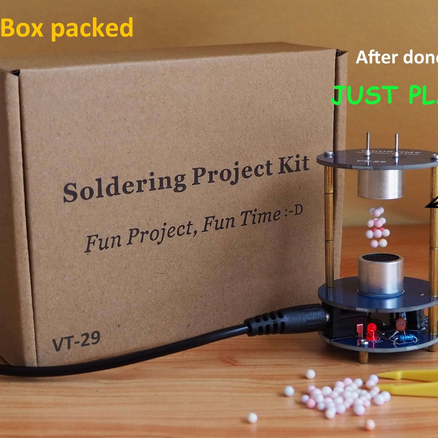 - Happy Teaching Time – Have fun with your kids or students, soldering practicing or electronic circuit learning. After assembled, you all will have a great time to play with the ultrasonic levitator kit.