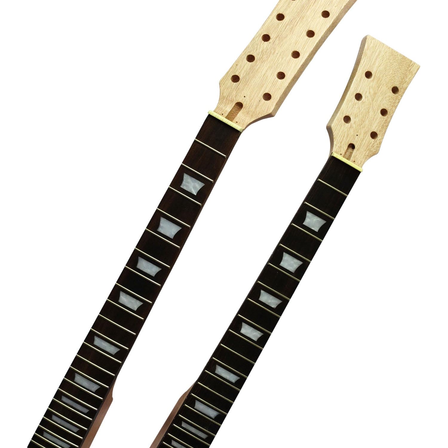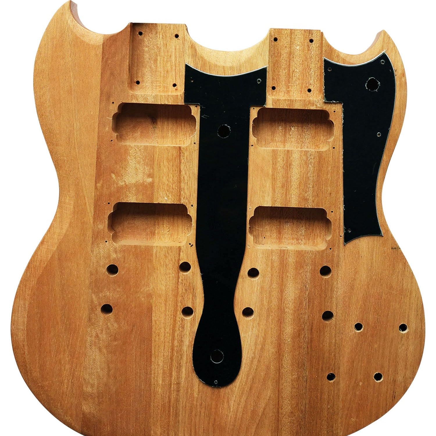 DIY Unfinished Electric Guitar Kit Double Guitar Neck and Body with Mahogany Body Mahogany Neck DYED Poplar Laminated Fingerboard Chrome Hardware with All Accessories Build Your Own Guitar