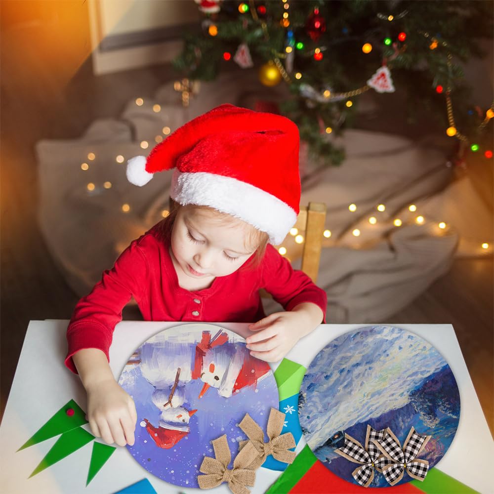 DIYDEC 6 Pack Round Wood for Crafts 12 Inch Unfinished Wood Slices Blank Wooden Door Hanger Sign Wooden Circles Discs with Bows Twine Glue Point for DIY Crafts Painting Christmas Home Holiday Decor