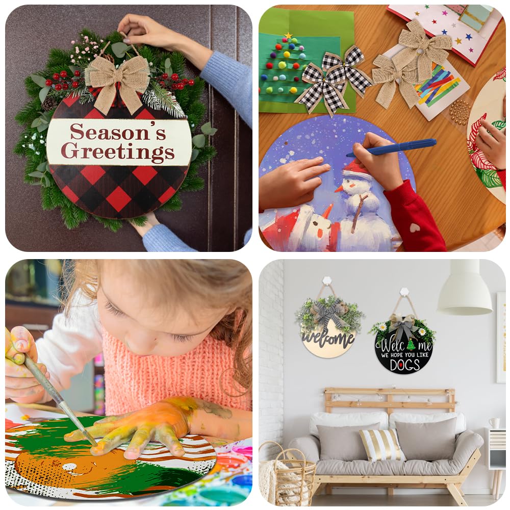 - 【Perfect Size】 The size of each wood circles measure 12 inches in diameter, and 0.1 inch in thickness, great size for door hanger, door design. The size of bows perfectly adapt to wooden slices, you can make exquisite handcrafts easily.