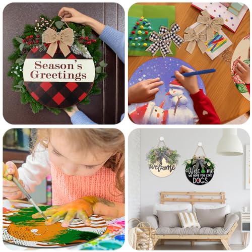 - 【Large Wood Circle】 You will receive 6 pieces 14 inch round wood discs, 10 meter twine, 4 burlap bows, 4 grid bows and 20 transparent round tapes in a package, rich quantity and perfect combination enough to meet your hand painted projects, wood craft making or wood burning need.