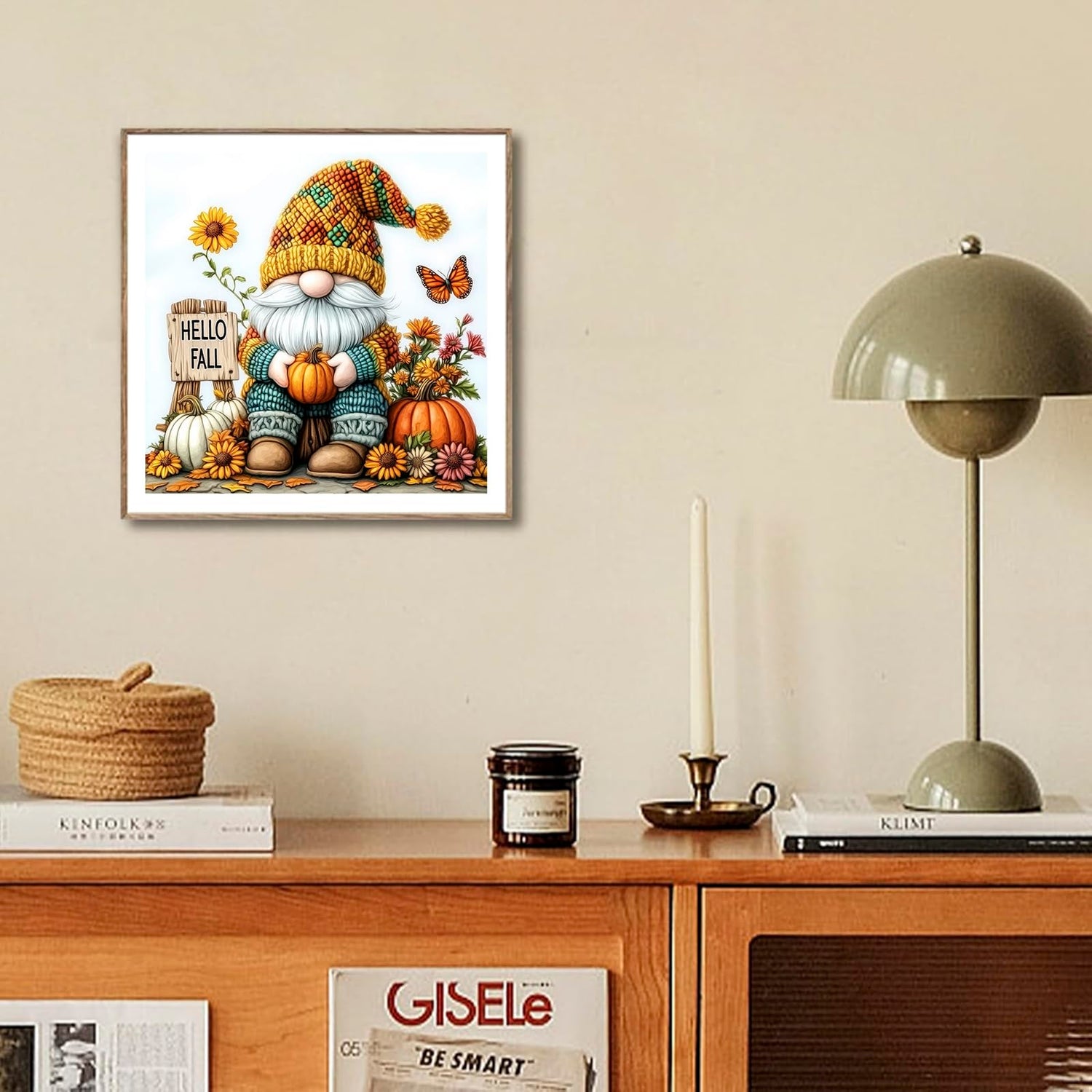 - Gnome Diamond Art Kits for Adults Include : The hellow fall diamond painting kit for adults canvas size is14x14In (35x35cm) large enough to show picture details. The glitter diamonds in this cute diamond art painting are consistent in size and shape.The diamonds color will never fade. Finished fall diamond art painting more brilliant and vivid. The diamond art gnome include pre-printed canvasx1, diamond dot penx1, wax /gluex1, trayx1, zipper bagsx10, anti-slip cap for drill penx1 and color coded diamondsxmany . Kindly note, the frame not inclueded