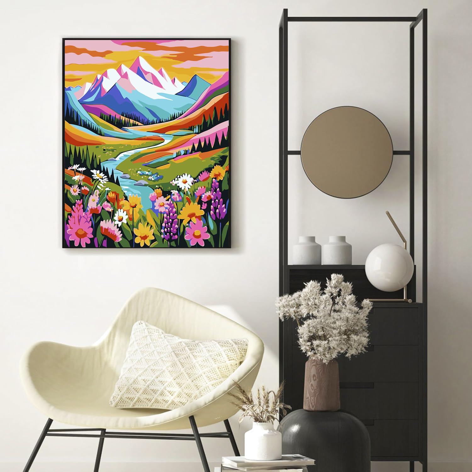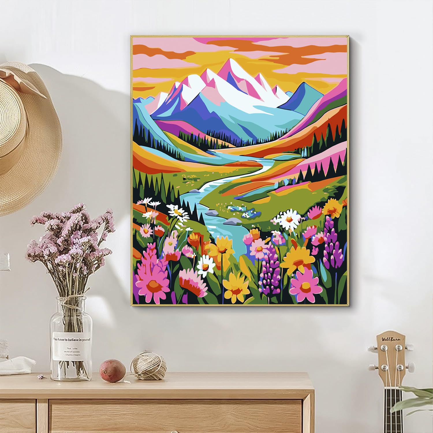 - Wide Application This flower mountain paint by numbers kit offers a calming and meditative experience, allowing individuals to focus on the present moment and reduce stress.Completing a paint-by-number project provides a tangible sense of achievement and boosts self-esteem Finished mountain painting by numbers can be proudly displayed as unique personalized home decor pieces. Best gift choice for your friends , family for Christamas, Thanksgiving, Birthday, Mother's Day