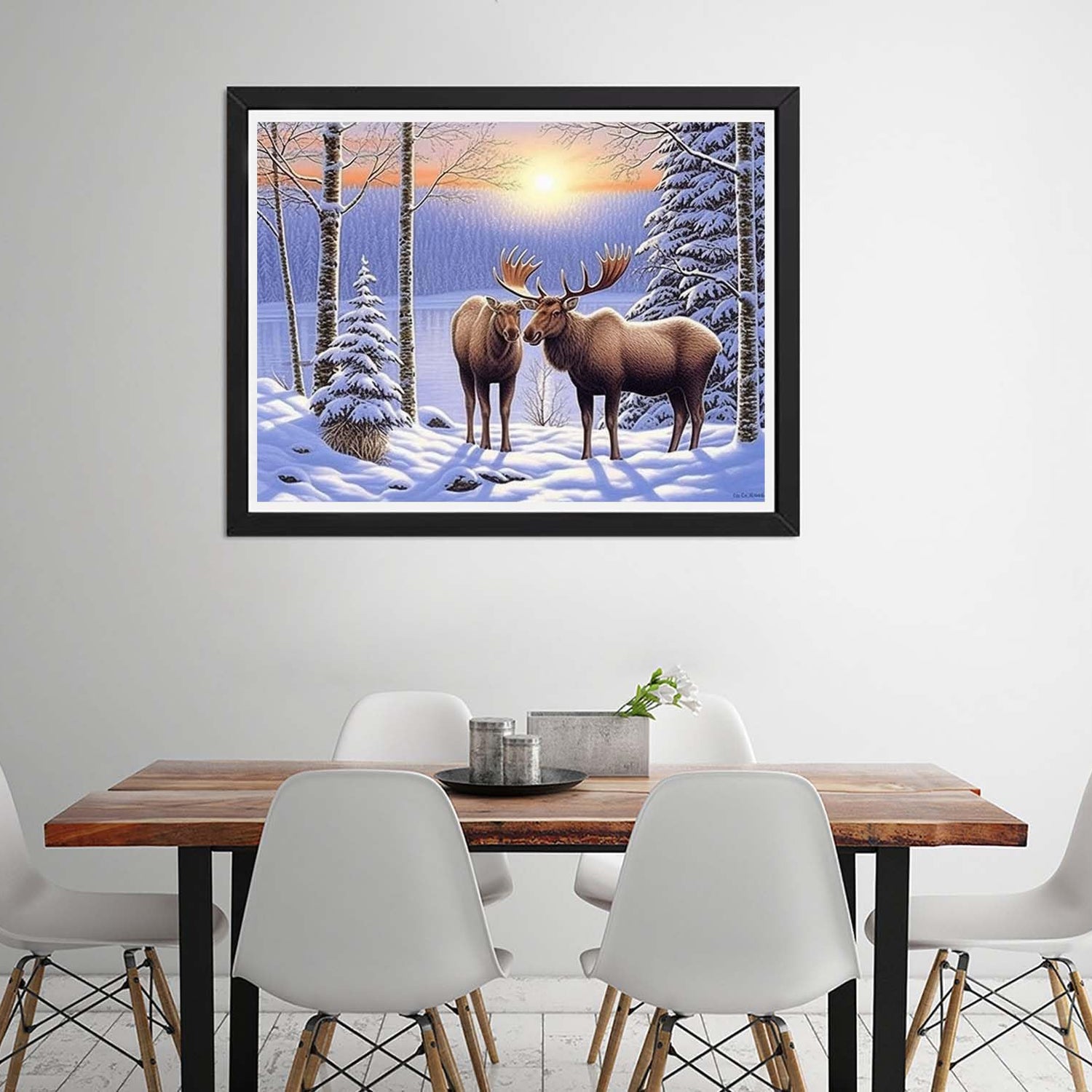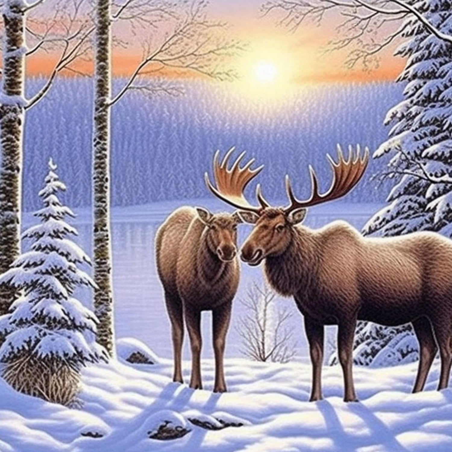Diymood DIY 5D Diamond Painting by Number Kits, Diamond Painting Moose Winter Forest Paint with Diamonds Arts for Adults Full Drill Canvas Picture for Home Wall Decor 40x50cm(16x20inch)