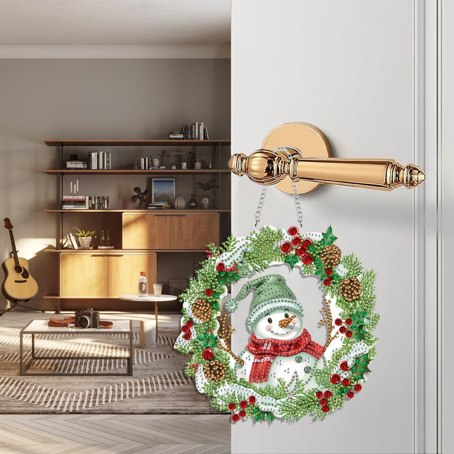 Diymood DIY Hanging Diamond Art Kits for Adults Christmas, Diamond Painting Kit Pendant Special Shaped Double Sided Acrylic Sun Catcher Board Wreath Pendants Canvas Window Wall Decor 8 x 8 Inch