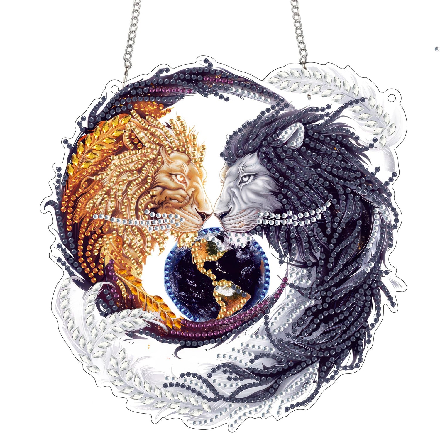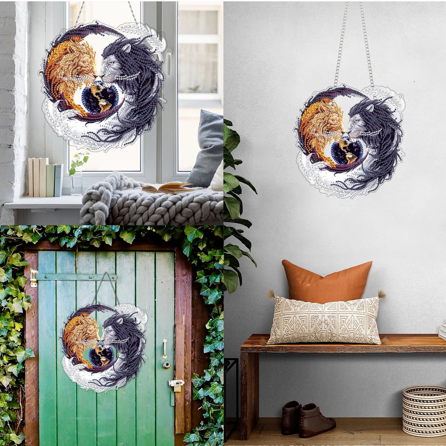 Diymood DIY Hanging Diamond Art Kits for Adults Lion, Diamond Painting Kit Pendant Special Shaped Double Sided Acrylic Sun Catcher Board Wreath Pendants Canvas Window Wall Decor 7.88 x 7.49 Inch
