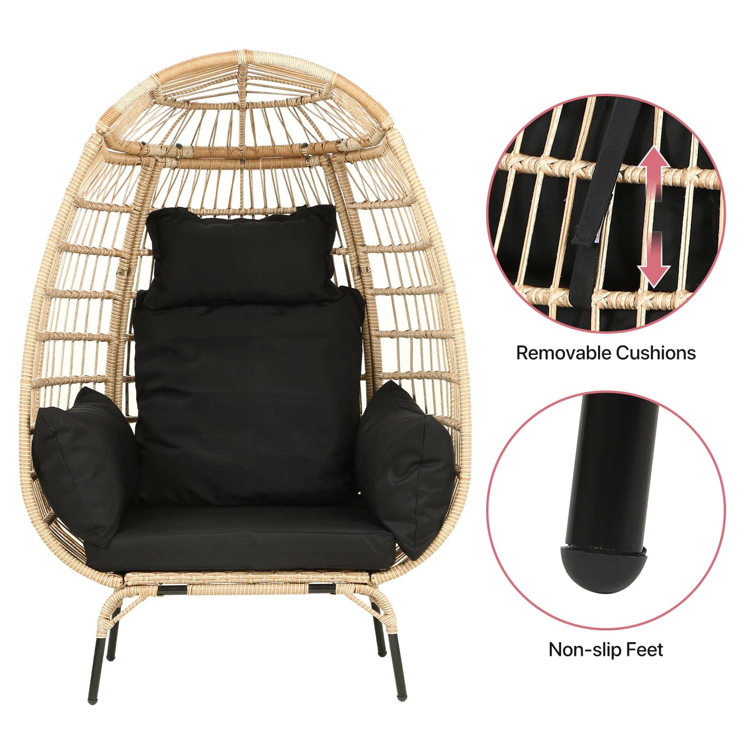 Dkelincs Wicker Egg Chair Indoor Outdoor Lounge Chair Patio Reading Chair Oversized Rattan Egg Chair for Patio, Backyard, Garden, Living Room w/ 4 Cushions Steel Frame, 352lb Capacity(Black)