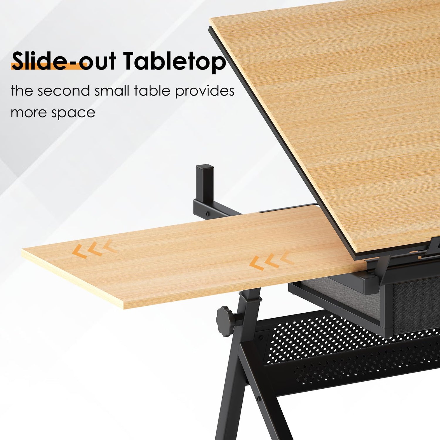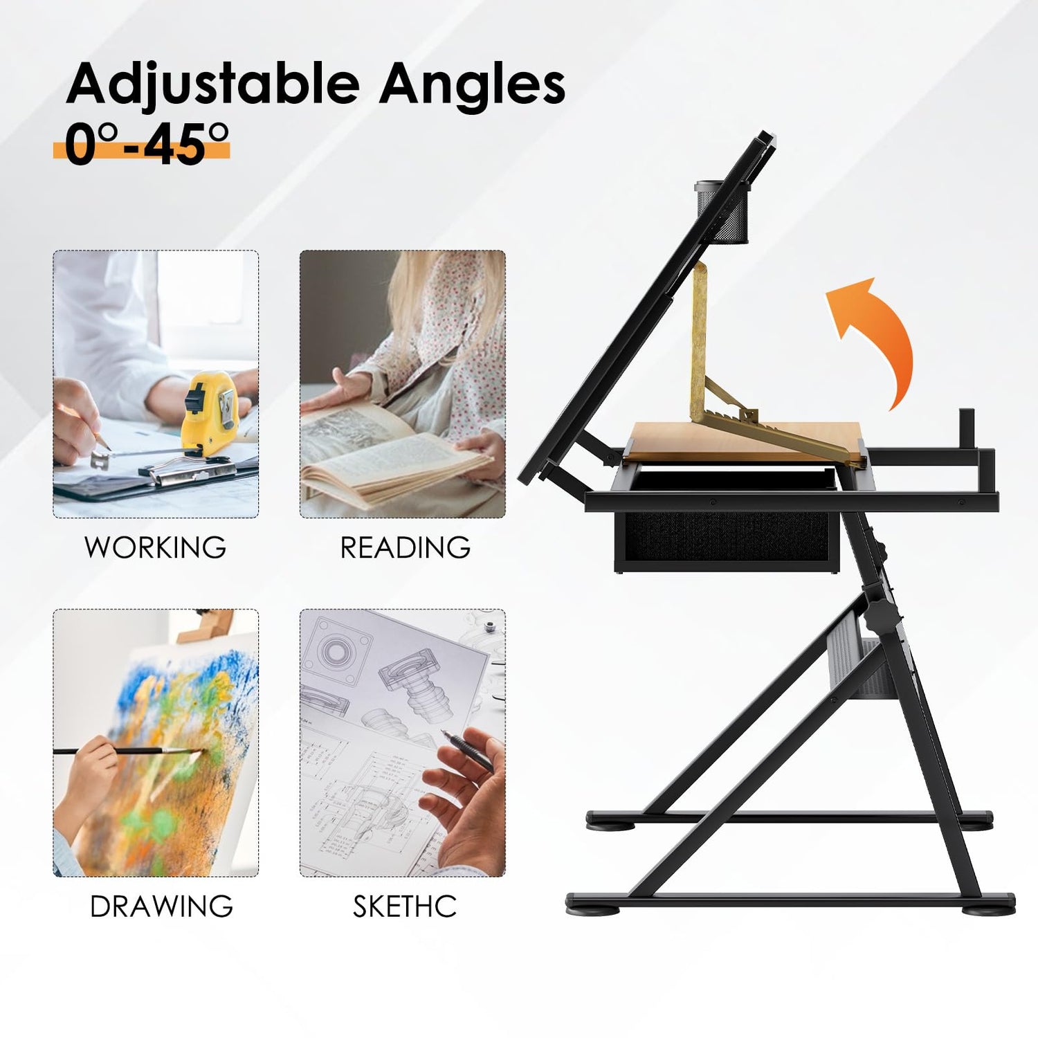 - 【Quality Material】The drawing desk features high density MDF desktop and high durability powder coated metal frame. Rubber feet not only ensuring the stability, but also protecting your floor.