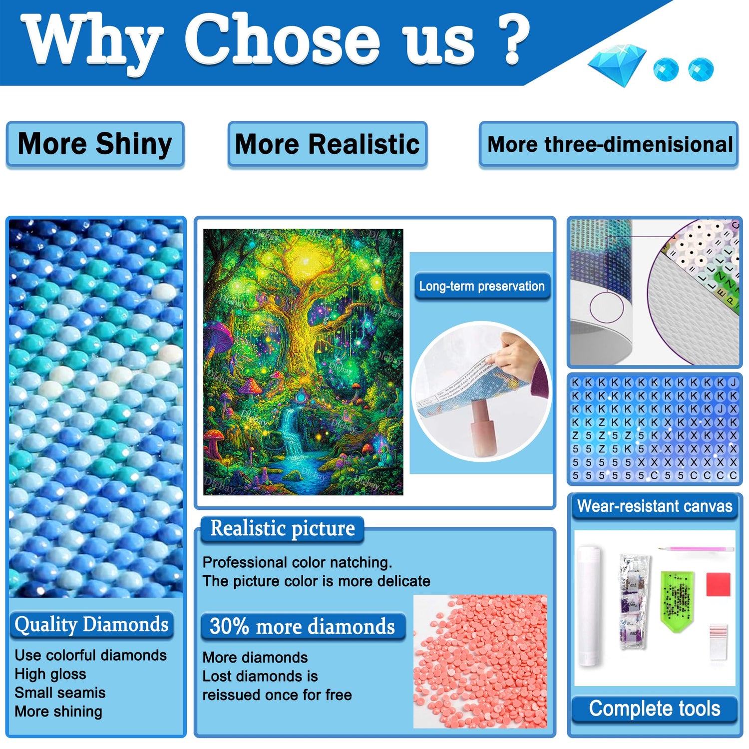 - 【Full Drill 5D Diamond Painting Kit】 Our diamond painting has complete diamond painting accessories and tools.The diamond painting tools include HD print canvas,diamond painting pen,diamond painting wax, transparent ziplock bags,diamond painting trays and sufficient number of round diamonds ( matching the canvas color codes).Spend less money get more diamond paintings to add artistic flavor for our living space.The complete diamond painting can be stored for more than 10 years