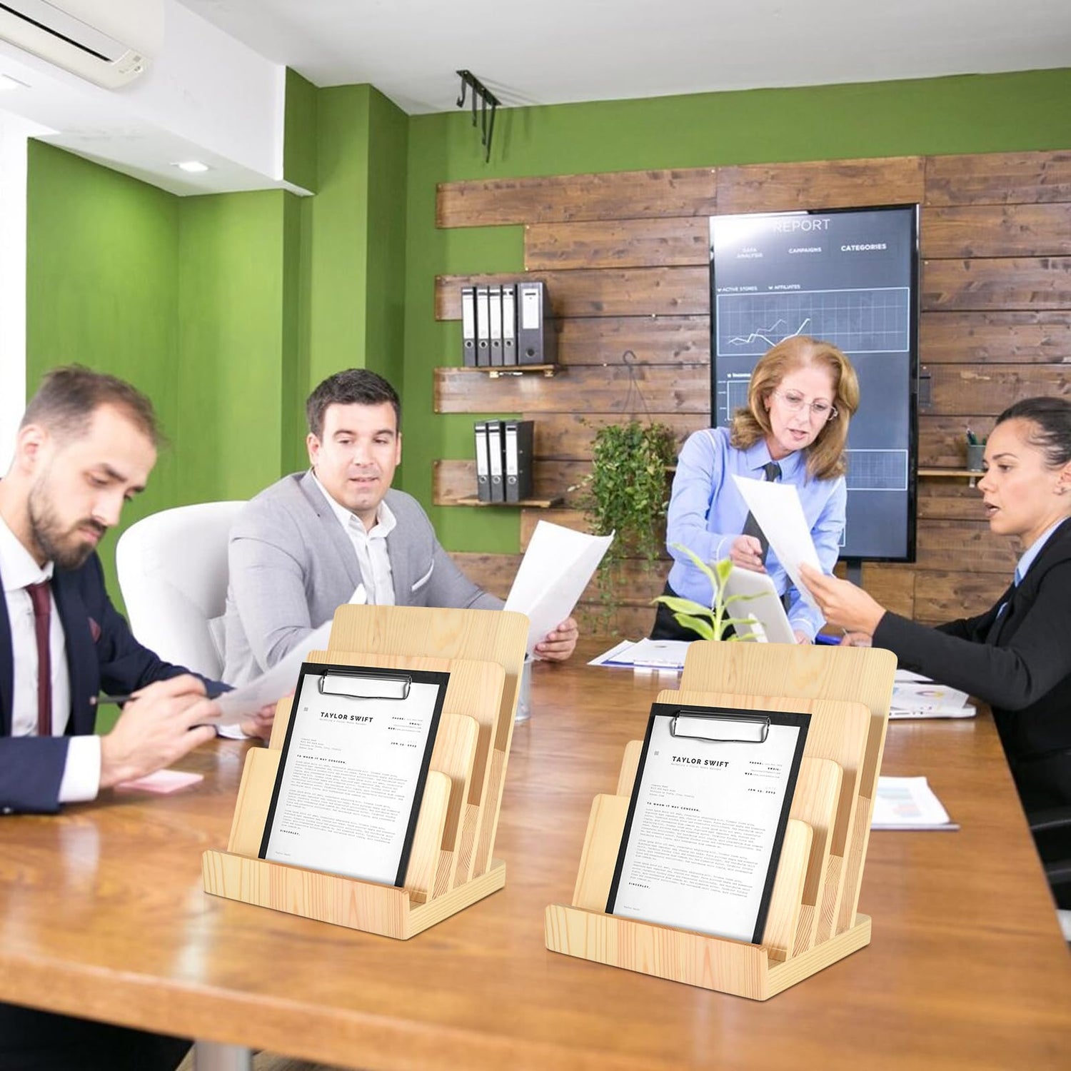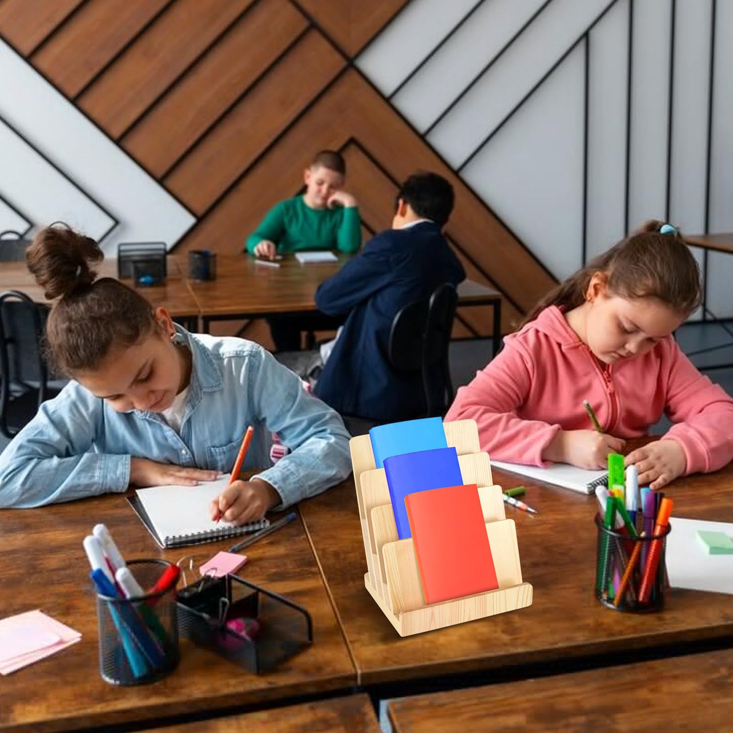 - 4.Paper Holder Easy to Use: The depth between each tier of the paper holder stand for desk is ample room for many brochures. Our greeting card display stand requires no assembly and is ready to use right out of the package.Reusable, and has a long-lasting service life.