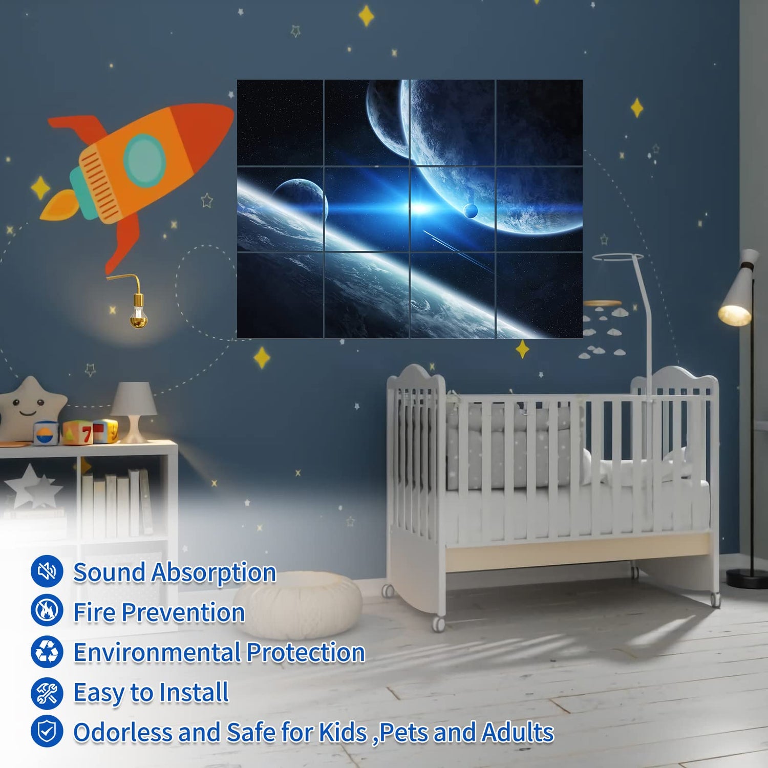 - ❤【Safe and Eco-Friendly】Art Sound proof panels for walls made with 100% Polyester Fiber, high density is better,non-toxic and formaldehyde-free, which have an great advantage of reducing and absorbing noise. Safe to breathe and touch,it's safe for adults, kids, and pets!