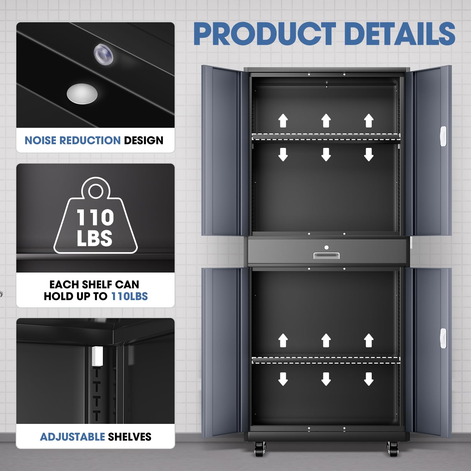 - LARGE STORAGE CAPACITY - Large storage cabinet overall size: 72.56 inch×31.5 inch×15.7 inches (H x W x D). Ideal for use in garages, utility rooms, offices, or any space that requires extra storage, offering users a vast realm for organizing and storing items.