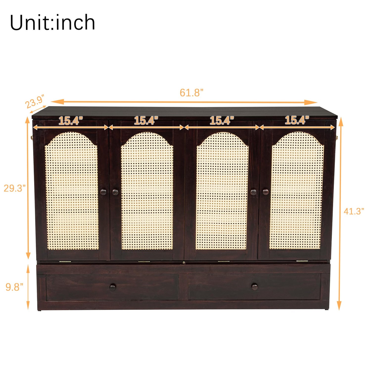- Rustic and Vintage Style: This Queen Size Murphy Cabinet Bed features a unique rattan decoration panel, adding a touch of rustic charm and creating a cozy, stylish atmosphere in any room.