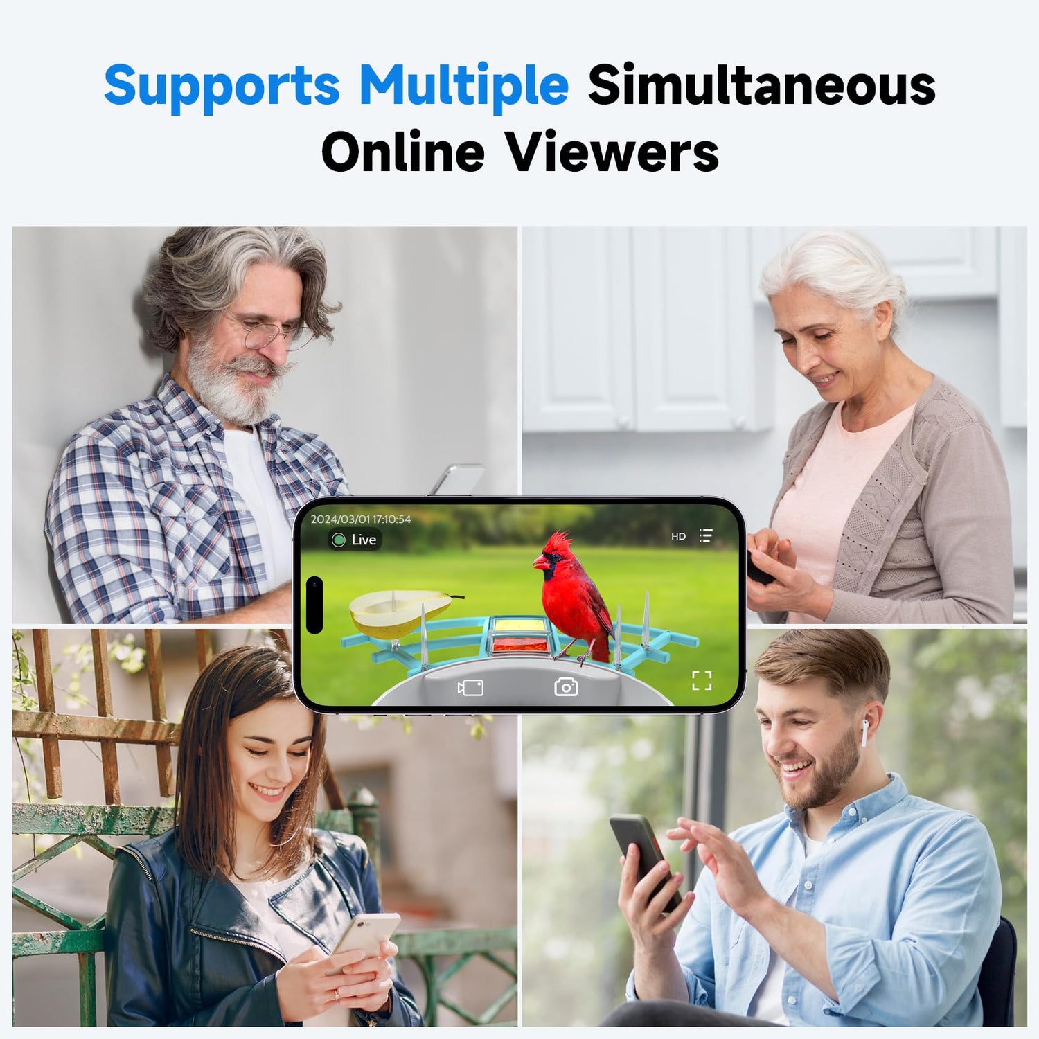 - 【Bird Camera with 2K Full-Color Night Vision】Experience the bird feeder's stunning 2K resolution and vibrant color night vision, ensuring crystal-clear imaging day or night. Featuring a 3x digital zoom and a 135° wide-angle lens, it captures every moment with precision. Connect seamlessly via stable 2.4GHz Wi-Fi (NOT compatible with 5GHz), allowing you to observe and document avian visitors from the comfort of your home.