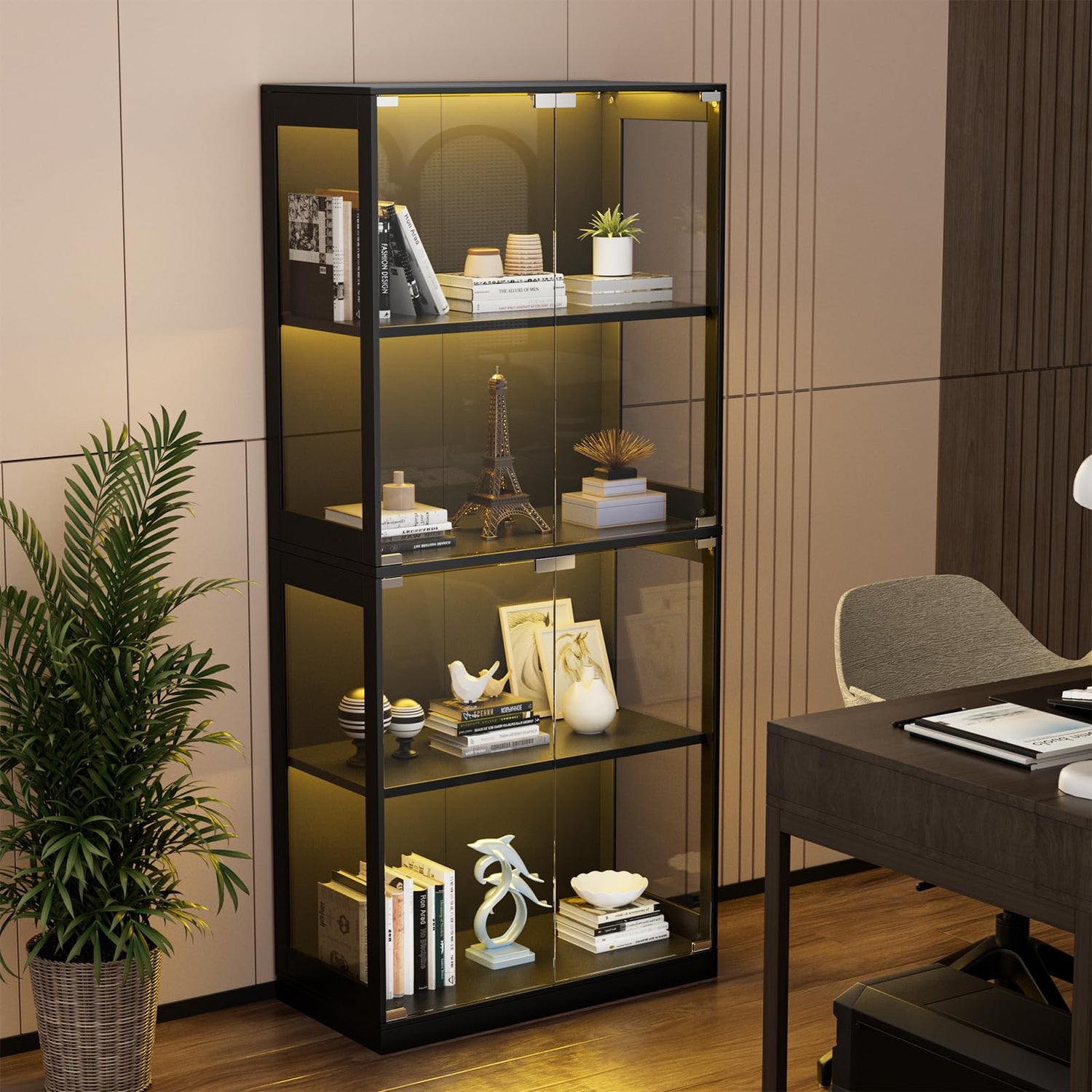 - Storage and Display 2 in 1: This glass cabinet is designed specifically for collectors of anime, games and trendy toys and equipped with 4 shelves for storing and displaying artifacts, models, and action figures. Minimalist tech style and e-sports style appearance, not only a storage cabinet, but also the visual focus of the room
