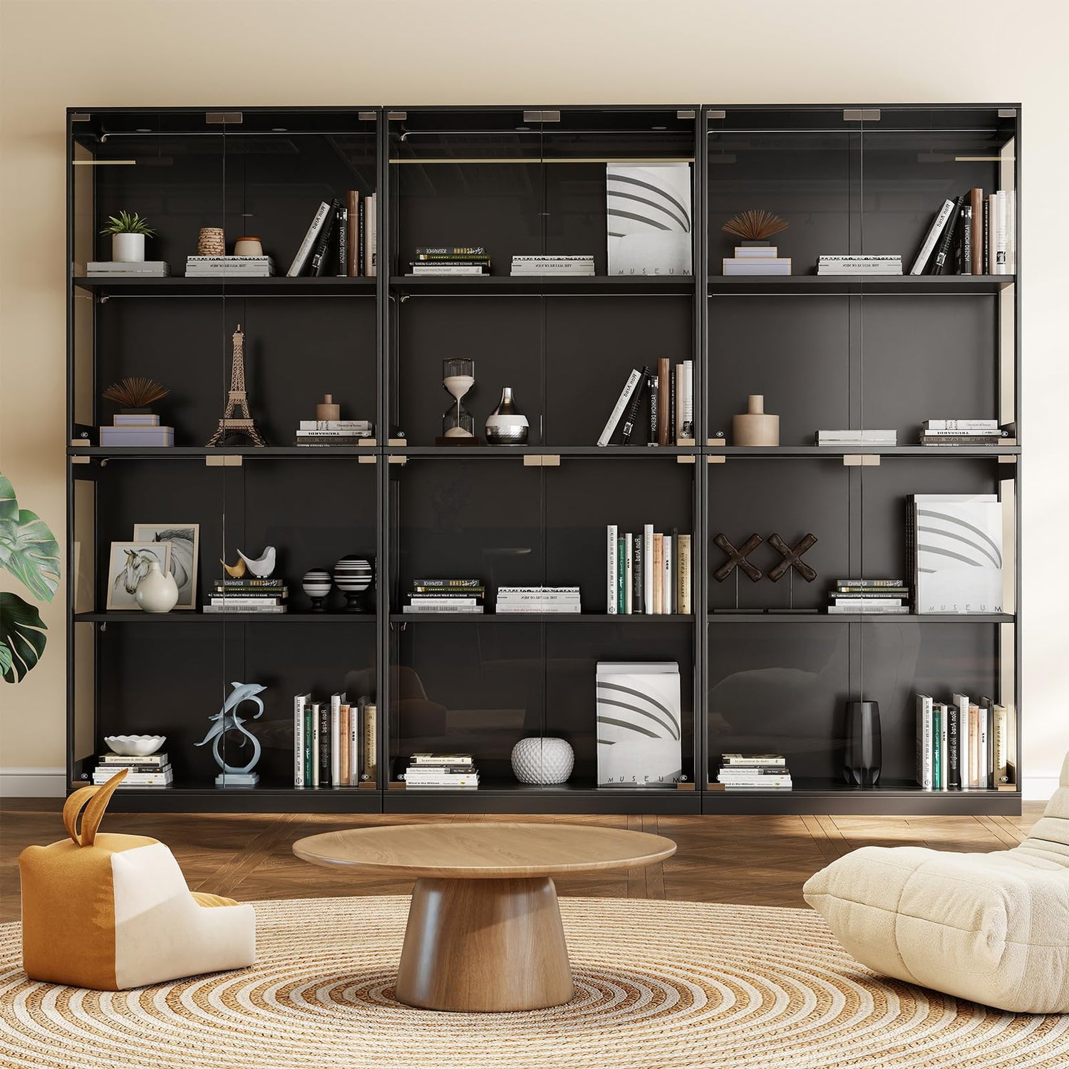 - Transparent and Visible Glass: This curio cabinet adopts high-definition tempered glass door panels with high light transmittance (the sides are acrylic panels), which can display the items inside the cabinet in all directions and reduce visual obstruction, easier and fast for you to find collectibles, trophies, car models,ec