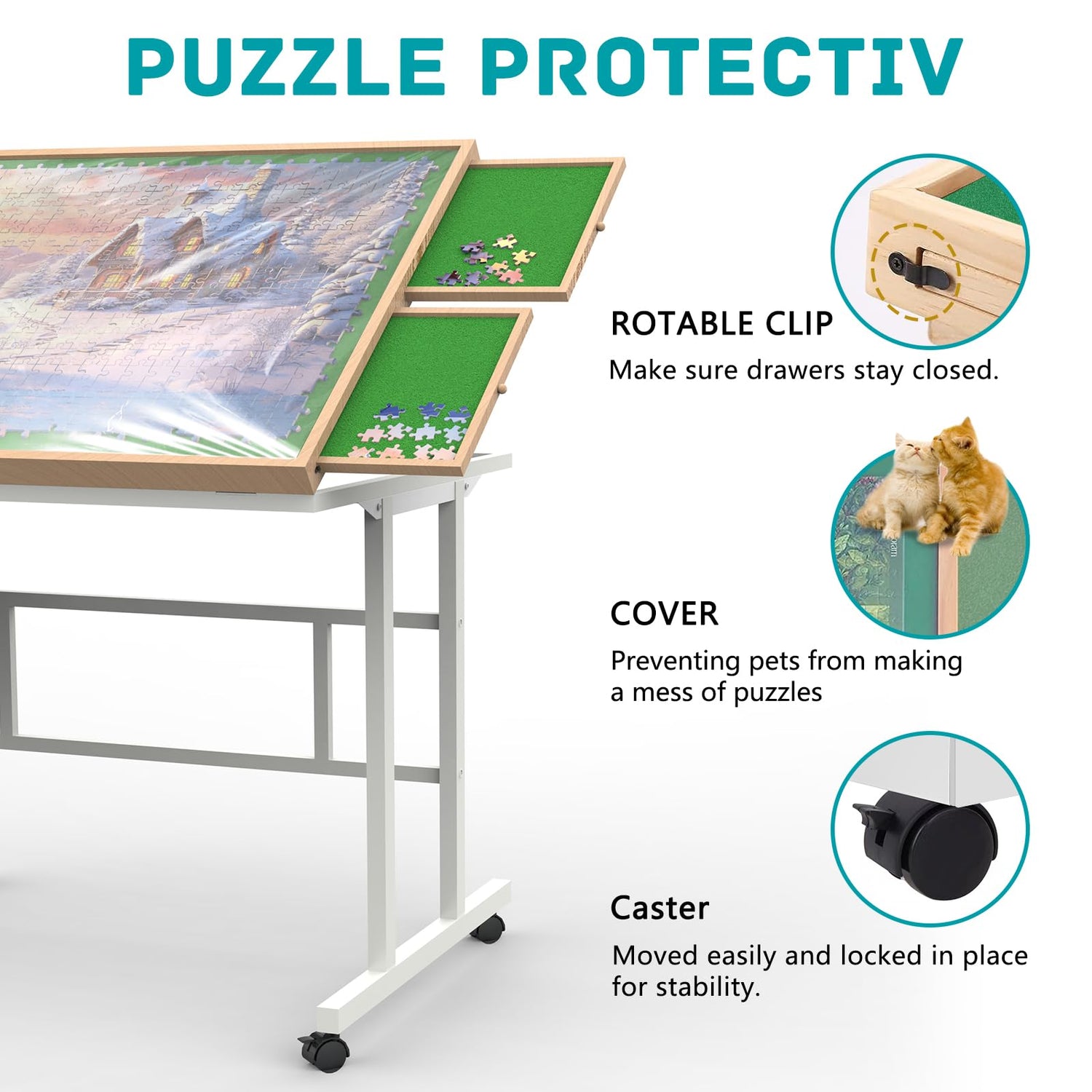 - Protective Cover:The jigsaw puzzle tables for adults will comes with a transparent cover to prevent pets from messing with it and dust from falling off during storage.