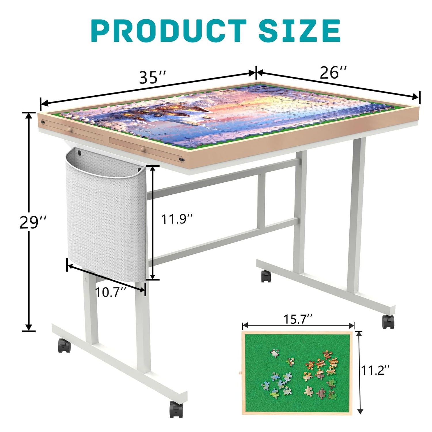 Doerpuz Jigsaw Puzzle Table 1500pcs,Puzzle Table with Legs and Storage Pocket,5 Adjustable Up Level Puzzle Tables for Adults,Puzzle Table with Drawers and Wheels,Wooden and Green Color