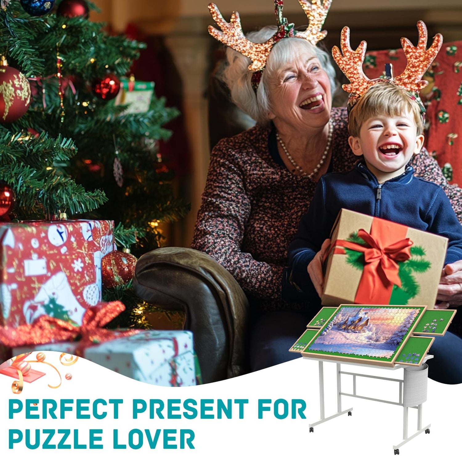 - Perfect Present:Stable design,5 adjustable angles,comes with pocket and cover,wooden,green and white color,this perfect jigsaw puzzle table with legs specially designed for puzzledoer,and it definitely is the best choice for your gift to family or friends!