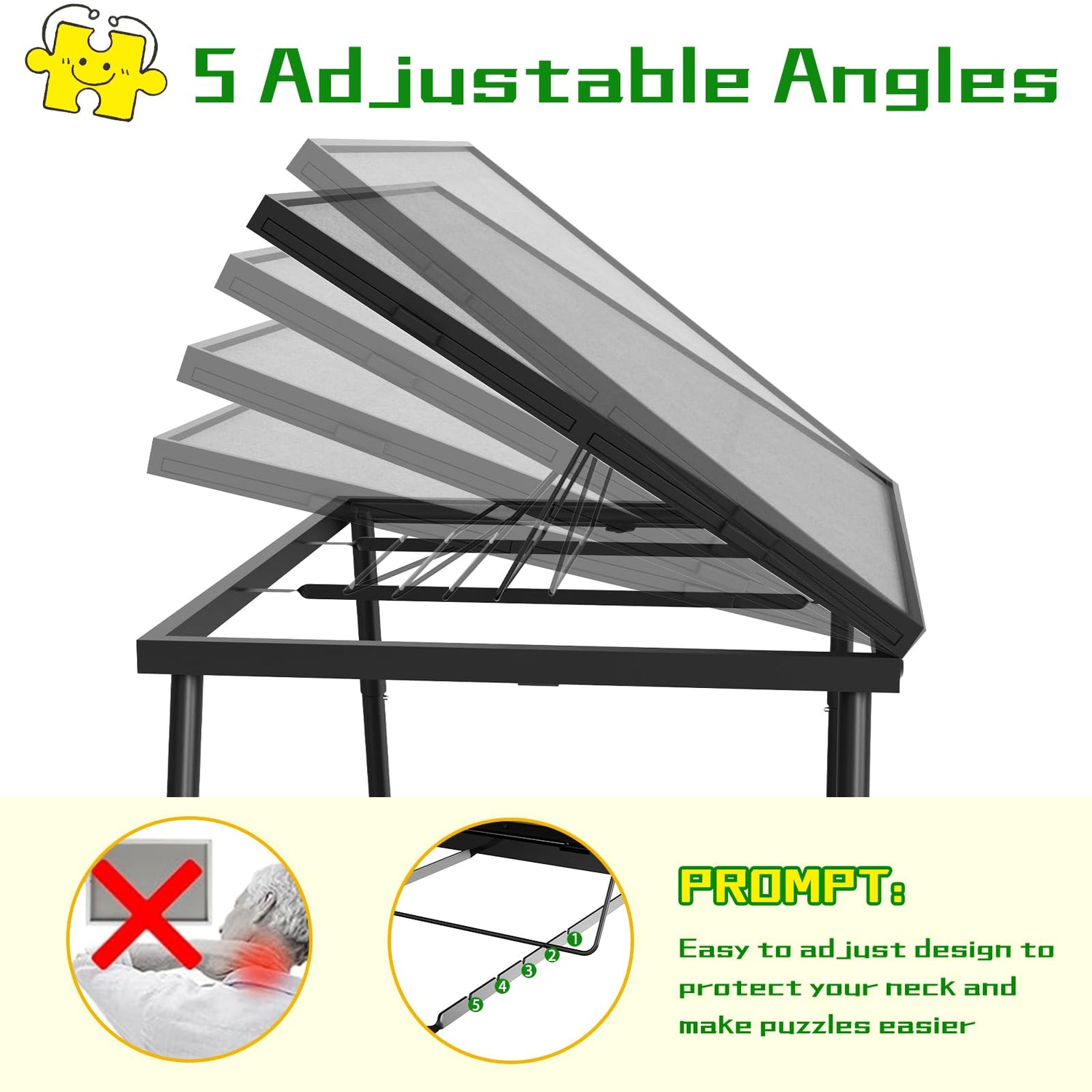 - 5 Adjustable Up Angles Level: This jigsaw puzzle tables for adults with drawers has five gear adjustment up angles,there must be a comfortable Angle for your neck and waist to puzzle.