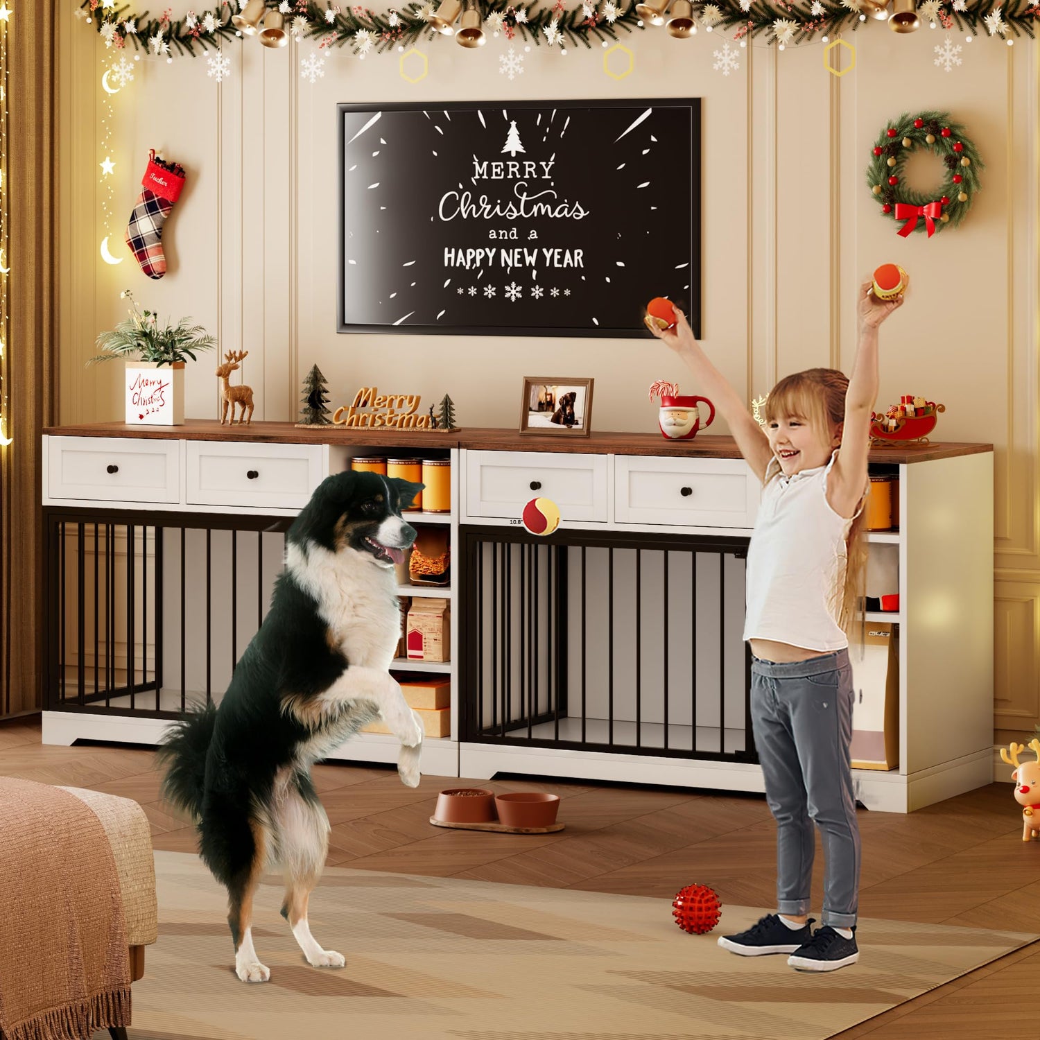 - Multi-Purpose Use - This large dog crate provides a spacious and comfortable space for dogs, with 2 drawers and 4 storage shelves it can also be used as a storage cabinet, end table, and nightstand in the living room and bedroom. Exquisite design styles can easily match a variety of home styles