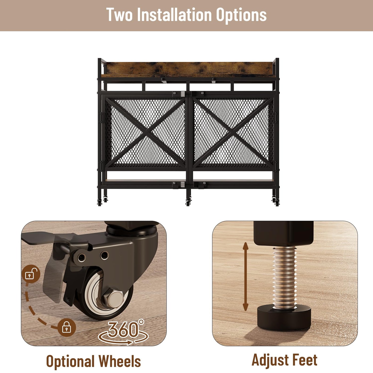 - âšăRefined Detail designăEquipped with 6 adjustable feet provide sturdy support while ensuring your floors don't get worn out by direct contact with the metal, and height adjustment to meet some specific needs. Optional 6-wheel casters allow for effortless mobility around your living space, add a convenience for some cleaning. Discreet door latch and premium wood finish elevate this dog crate beyond just a utilitarian pet product.