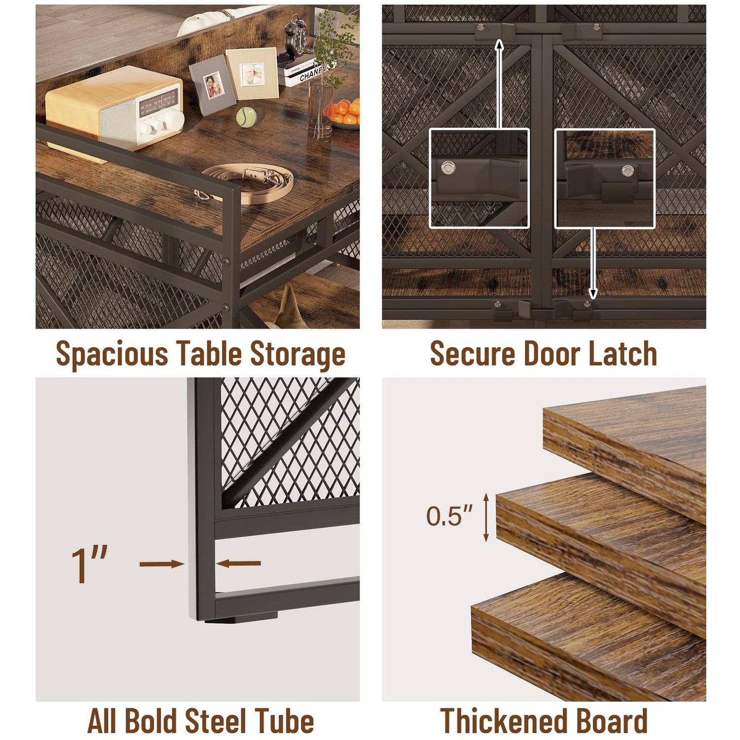 - âïžăDurable Kennel & Tear-resistanceăThis extra-large dog kennel offers a stylish and ample room for your furry friend, let them to move around comfortable and freely. The sturdy metal wire mesh construction reinforced by a metal cross bold, ensures both containment and safety, and preventing any risk of chewing or tearing.