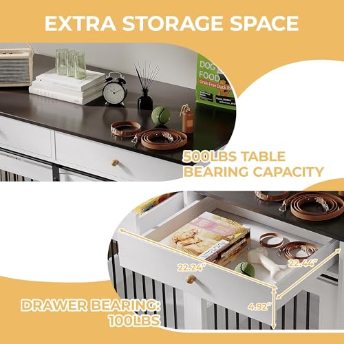 - Ample Storage: Designed with two large drawers for easy storage of pet accessories, toys, and supplies—ideal for keeping your space organized while providing a functional dog cage furniture solution.