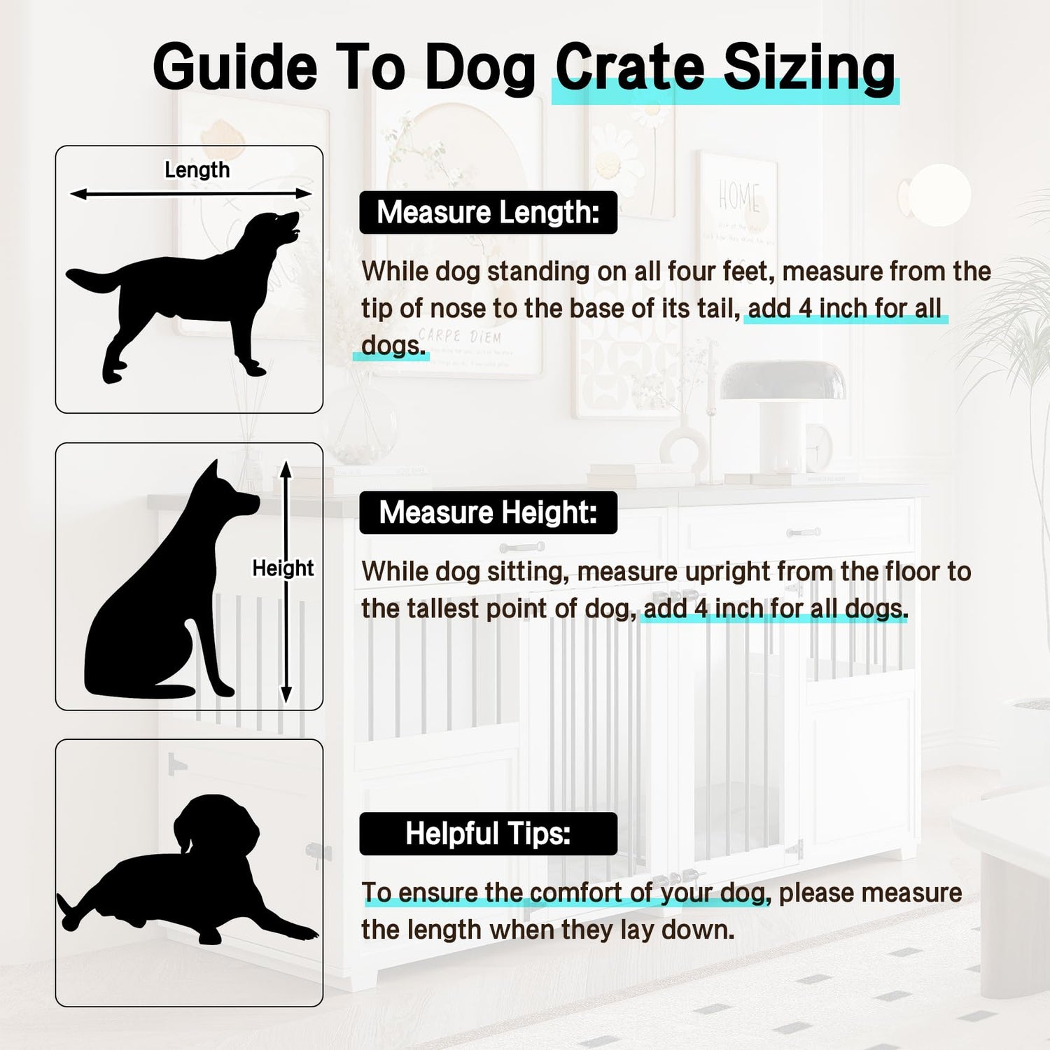 - CHANGEABLE SPACE ROOM - Our dog crate furniture offers a flexible space solution with a removable divider between two compartments. Thanks to the additional divider, you can effortlessly alternate between a single room or two separate rooms based on your pet's requirements. This design ensures enhanced versatility and convenience for both you and your beloved pet.
