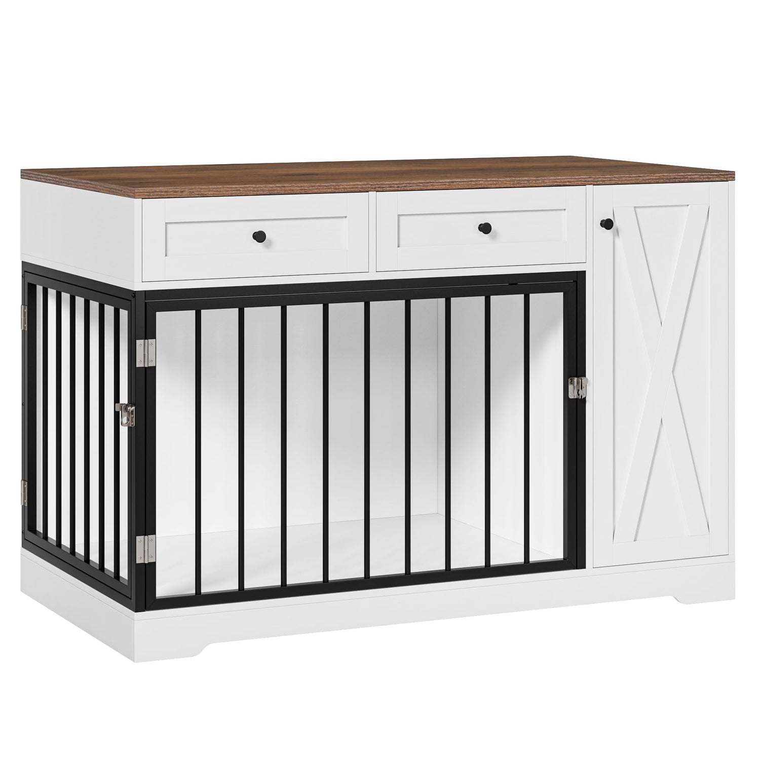 - Dog cage sideboard with storage: 47”X24” massive table top allows to place some decorations. 2 drawers and a spacious cabinet with shelf provide extra storage space for pet items such as dog toys, snacks, food etc. This dog kennel sideboard with drawers is functioning furniture for owners of small and medium-sized dogs, who apart from the comfort of pets, also care about the interior design.