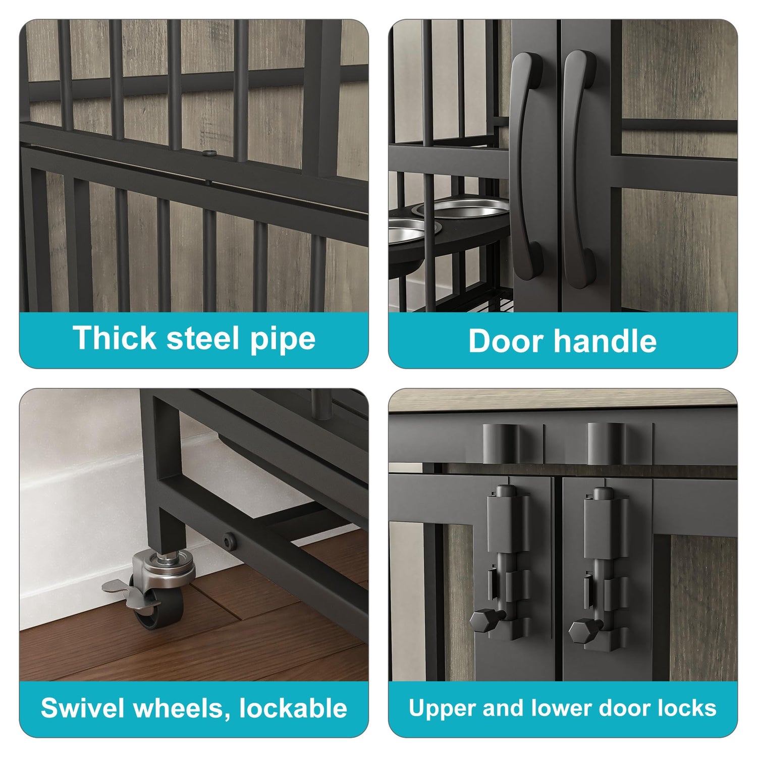 - 【Mobility and Stationary】The dog crate furniture is equipped with four smooth casters that make it easy for you to move it to the right position. Two of the casters have a locking feature that secures them in place.