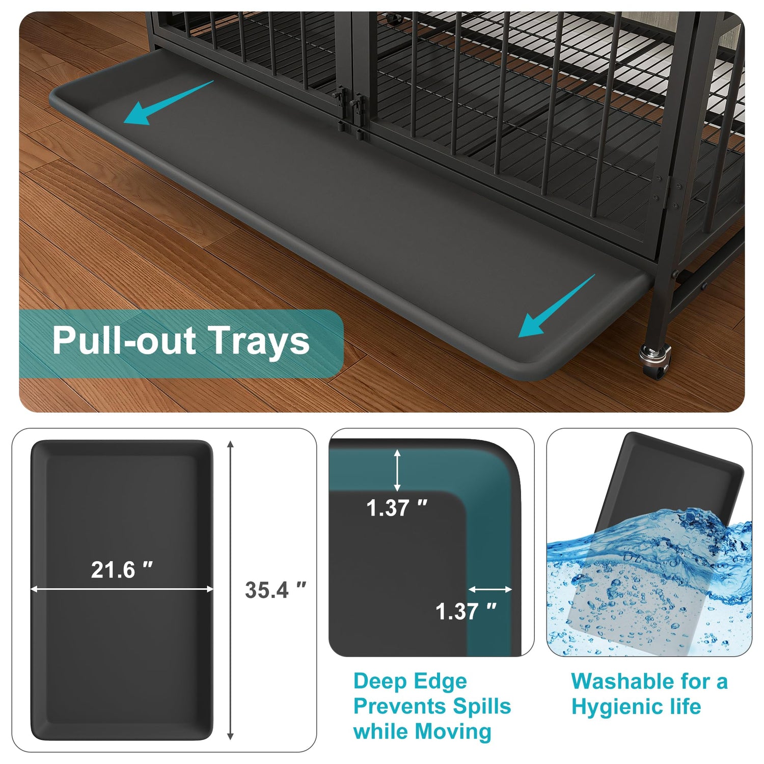 - 【Furniture Style Dog Crate】Our dog crate feature a multi-functional design, not only is this dog cage a safe haven for your dog, but it also doubles as a side table for your belongings, with a look that will easily blend into your home's style. The extra-large countertop accommodates your storage needs.