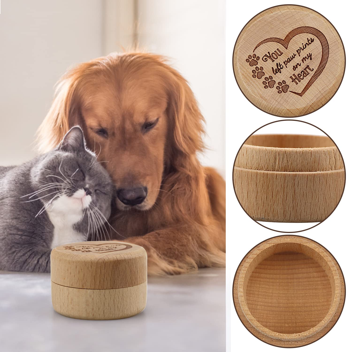- 【Souvenir Box】Engraved on the lid of the wooden box: ''You Left Paw Prints On My Heart'' The first souvenir box for your beloved puppy! A wooden box to store your beloved pet hair.