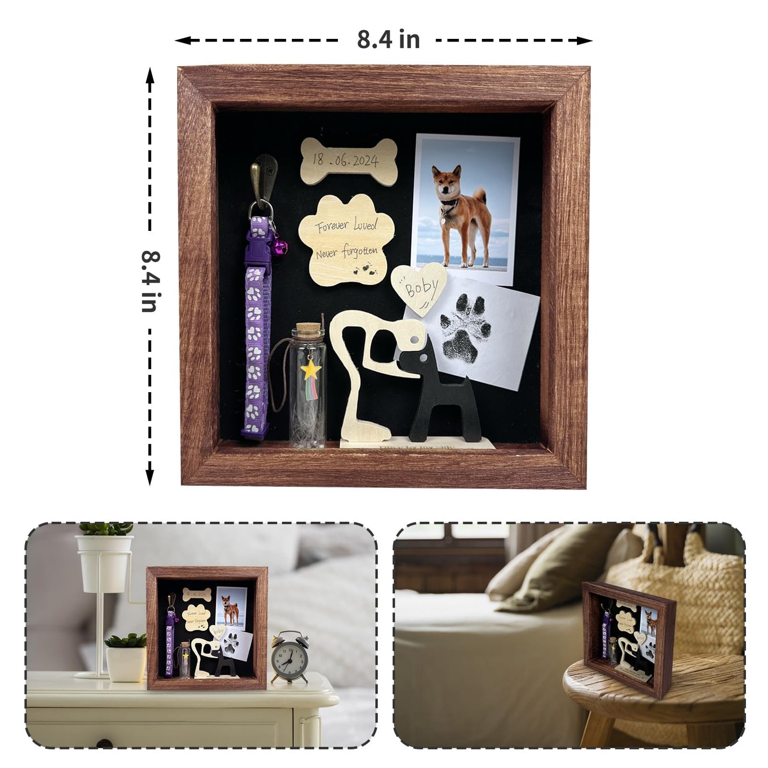 - In Memory of Furry Pets: Losing a pet is never easy, and this dog loss sympathy gift offers comfort during difficult times. Ideal for pet owners mourning their loss, it’s a meaningful gesture that provides emotional support. Whether for a friend, family member, or yourself, this pet tribute shadow box is a timeless way to express love, gratitude, and remembrance for a cherished companion