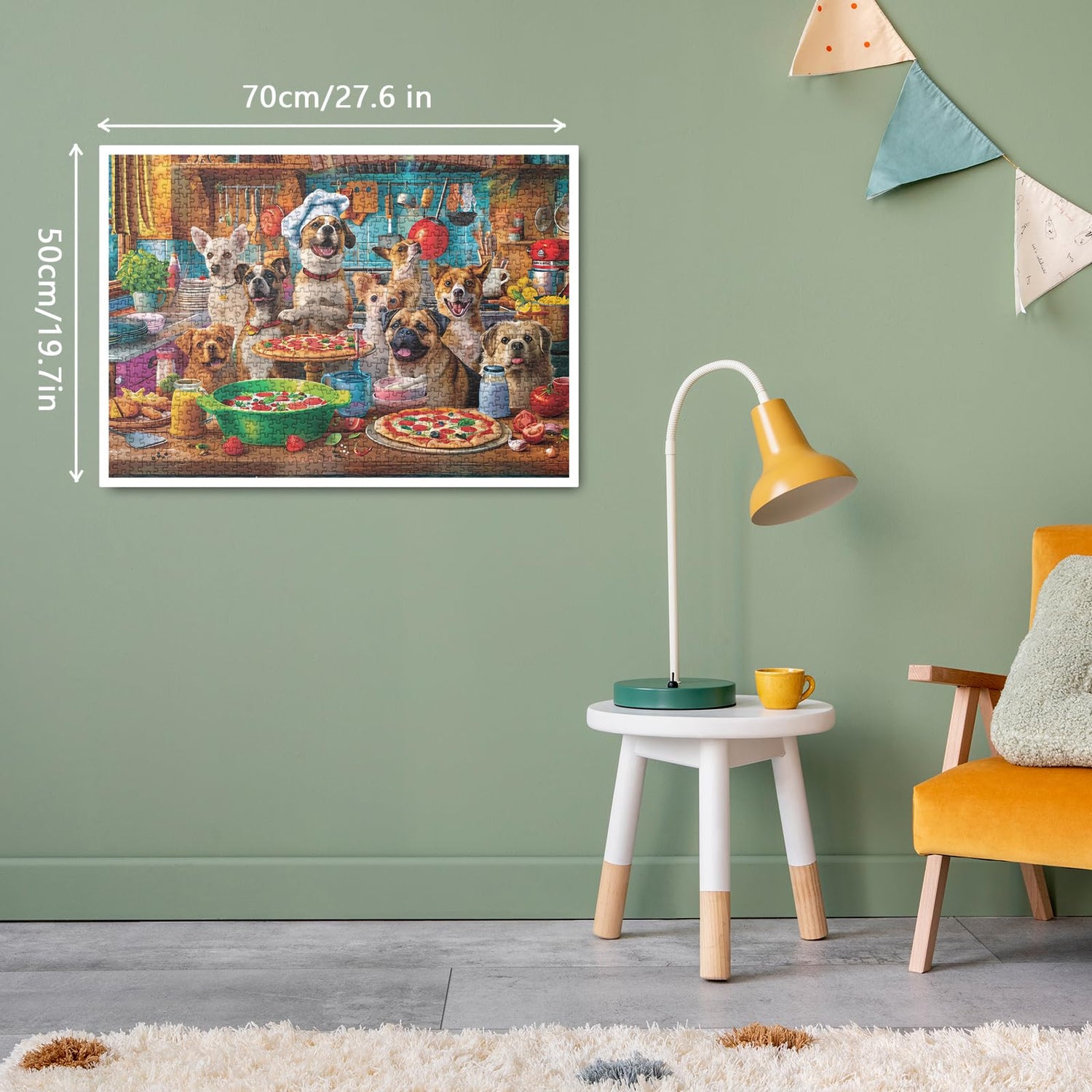 Details: Dog Puppy Pizza Puzzles for Adults 1000 Pieces, Food Kitchen Jigsaw Puzzle, Animals Funny Puzzles