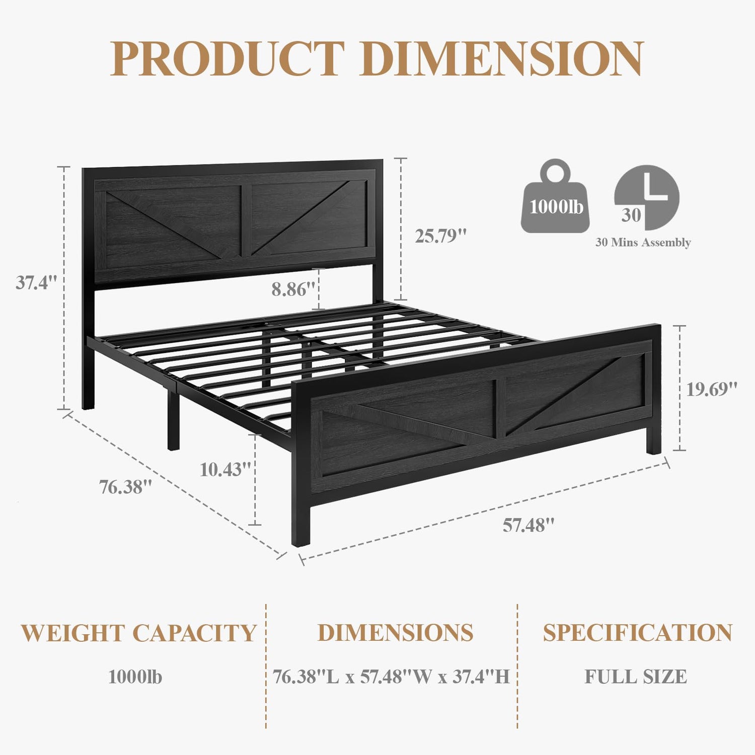 - VINTAGE INDUSTRIAL DESIGN: Embrace an vintage industrial chic vibe with the rustic barn door-inspired wood headboard and footboard, paired with a black metal platform bed frame. Built to last, DOGIBIXO heavy-duty bedframes with 12 horizontal metal support rods and 9 legs evenly distributes weight, supporting up to 1200 pounds. Say goodbye to sagging mattresses and enjoy superior support!