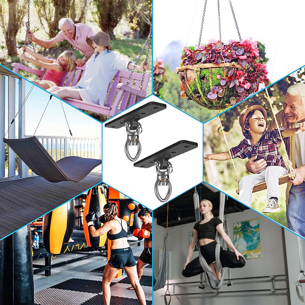 - Wide Range of Use: The swing hangers are compatible with various types of swings, such as porch swings, hammocks, yoga swings, boxing equipment, and more. They are suitable for indoor and outdoor use, and can be used in playgrounds, backyards, patios, or anywhere you want to hang your swing. They are the best anchoring solution for all suspension straps and resistance trainers.