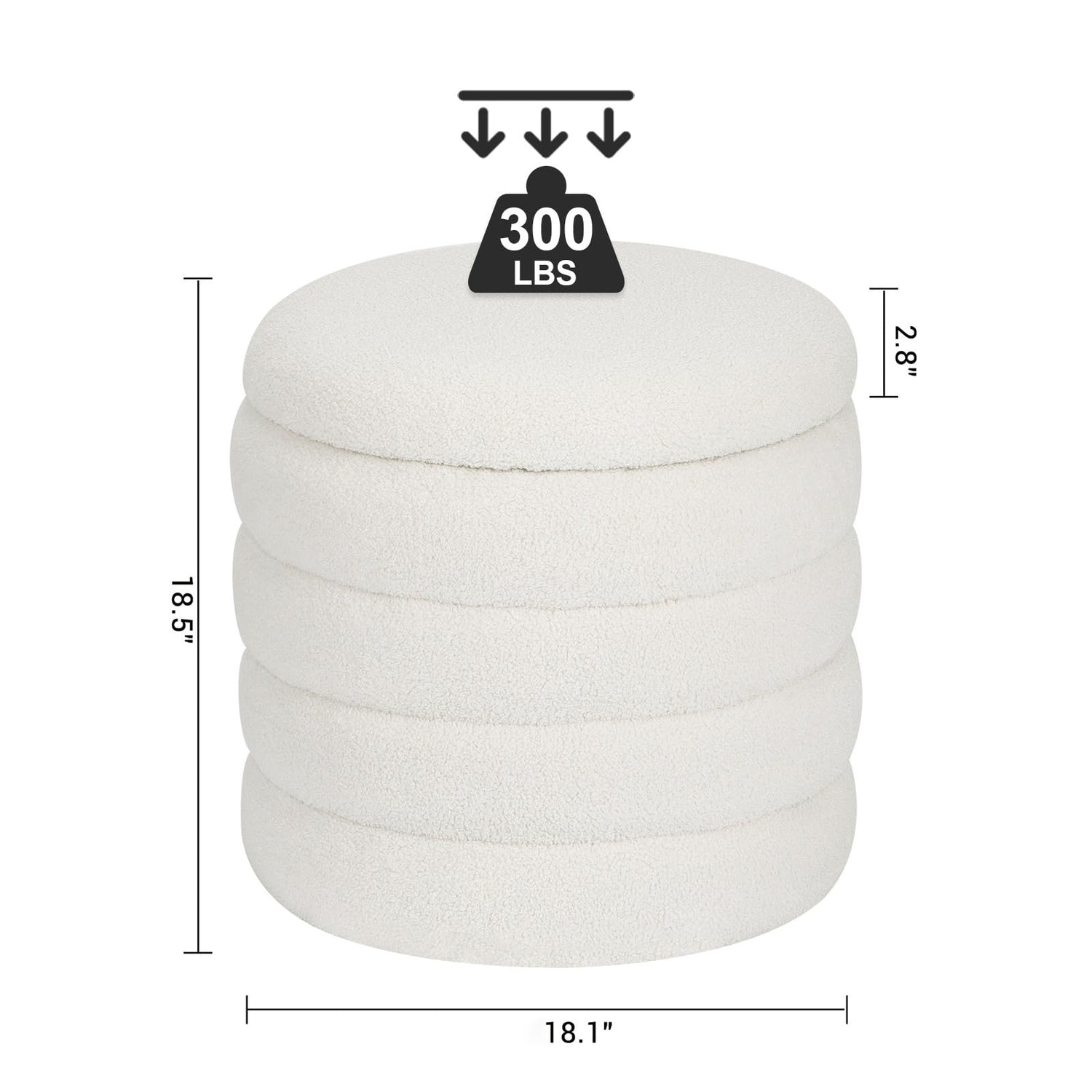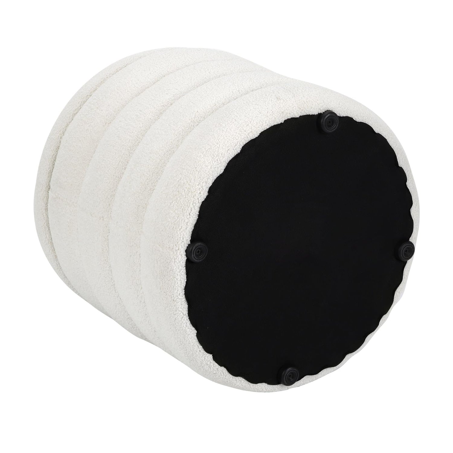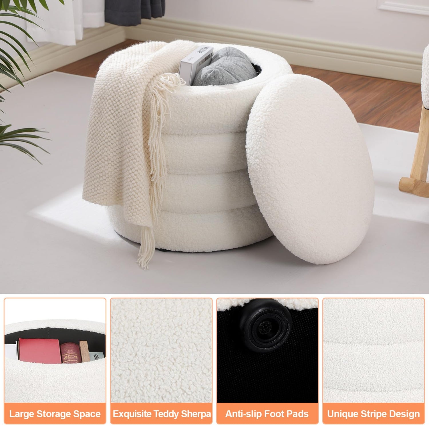 Dolift Modern Teddy Sherpa Foot Rest for Couch, Round Ottoman with Storage, Upholstered Foot Stools Ottoman, Vanity Chair for Makeup Room Bedroom Living Room (White)