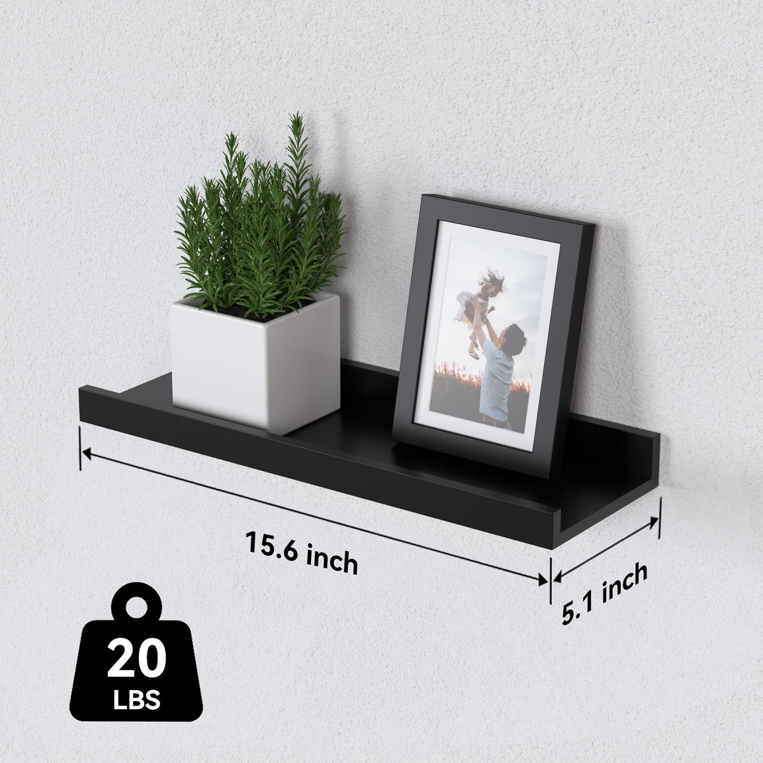 - 【Multiple Display Options】- The dimensions of each floating shelf are 5.1"D x 15.6"W x 1.8"H. These hanging shelves can be arranged in one or more places based on your needs or the size of your wall since we offer 6 shelves in total. In addition, these shelves for wall storage can be installed separately as 6 individual shelves or integrated into one long shelf with every two or three shelves. With our sleek black floating wall shelf set, your dull space will be transformed into wall art.