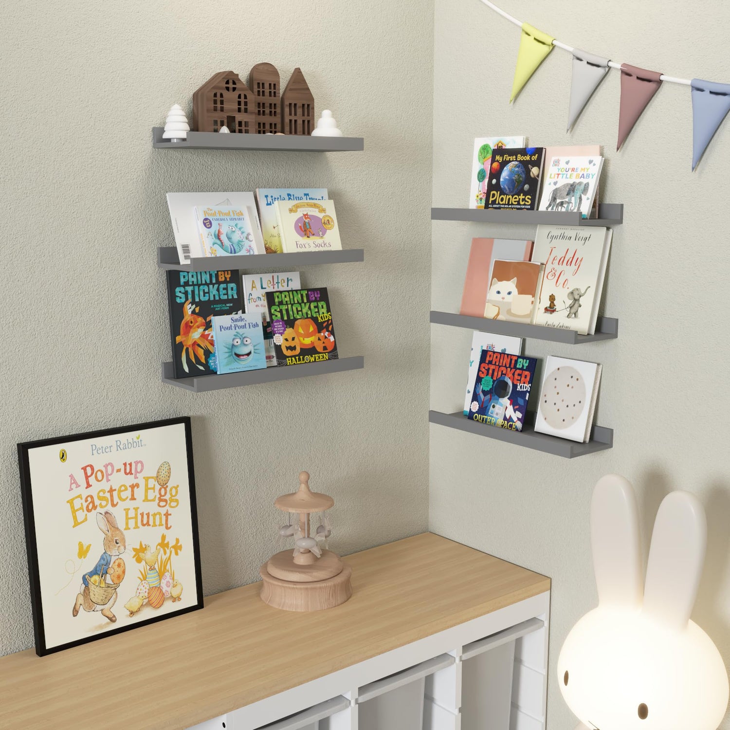 DOLLFIO Floating Shelves Set of 6, Grey Wall Shelves with Lip, Display Shelves for Wall Decor, Modern Picture Ledge for Living Room, Bedroom, Nursery, Bathroom, Pictures, Books, Plants- Grey