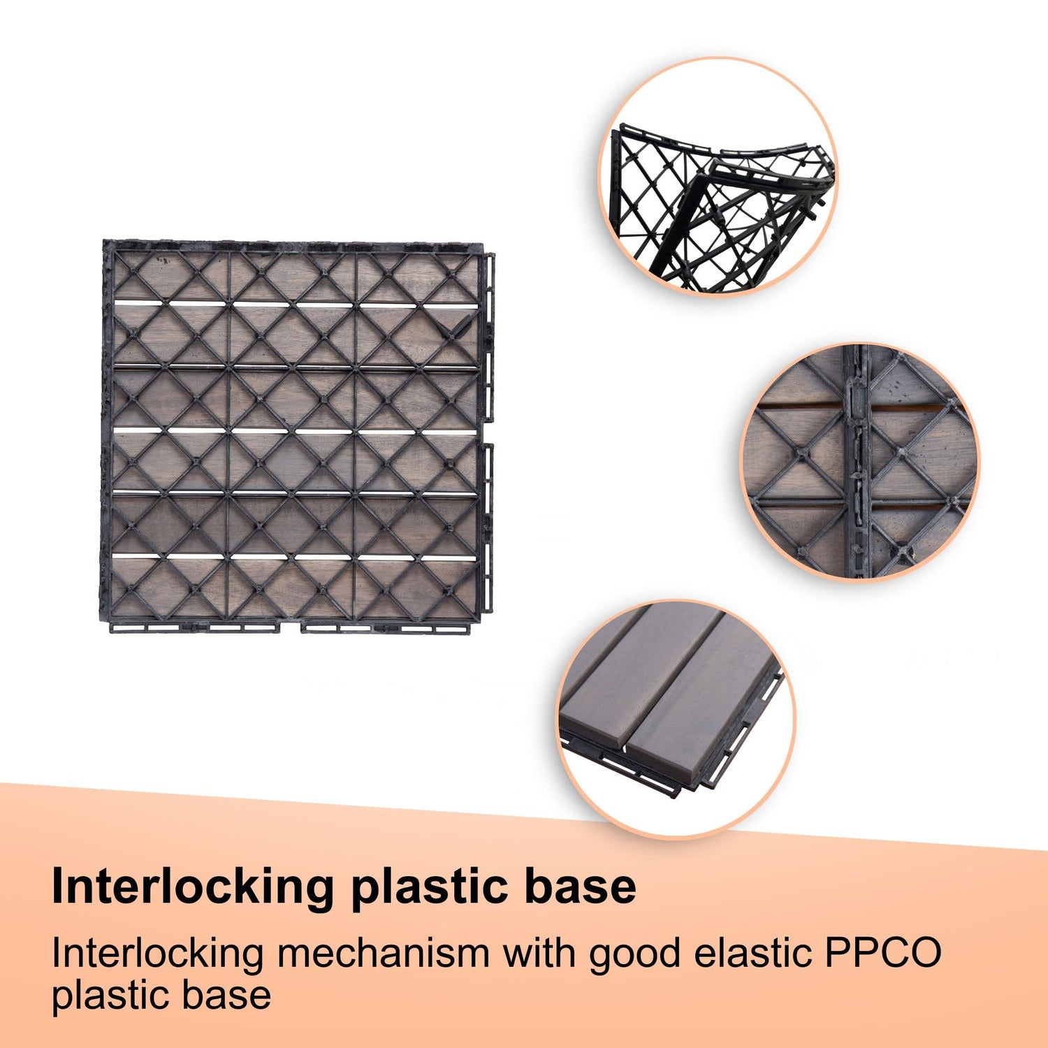 Dolonm Interlocking Solid Wood Deck Tiles, Golden Teak Wood for Flooring Tiles, for Patio Balcony Waterproof Both Indoor and Outdoor Decking Tile Gray Striped 12 x 12 x 0.7 inches Pack of 10