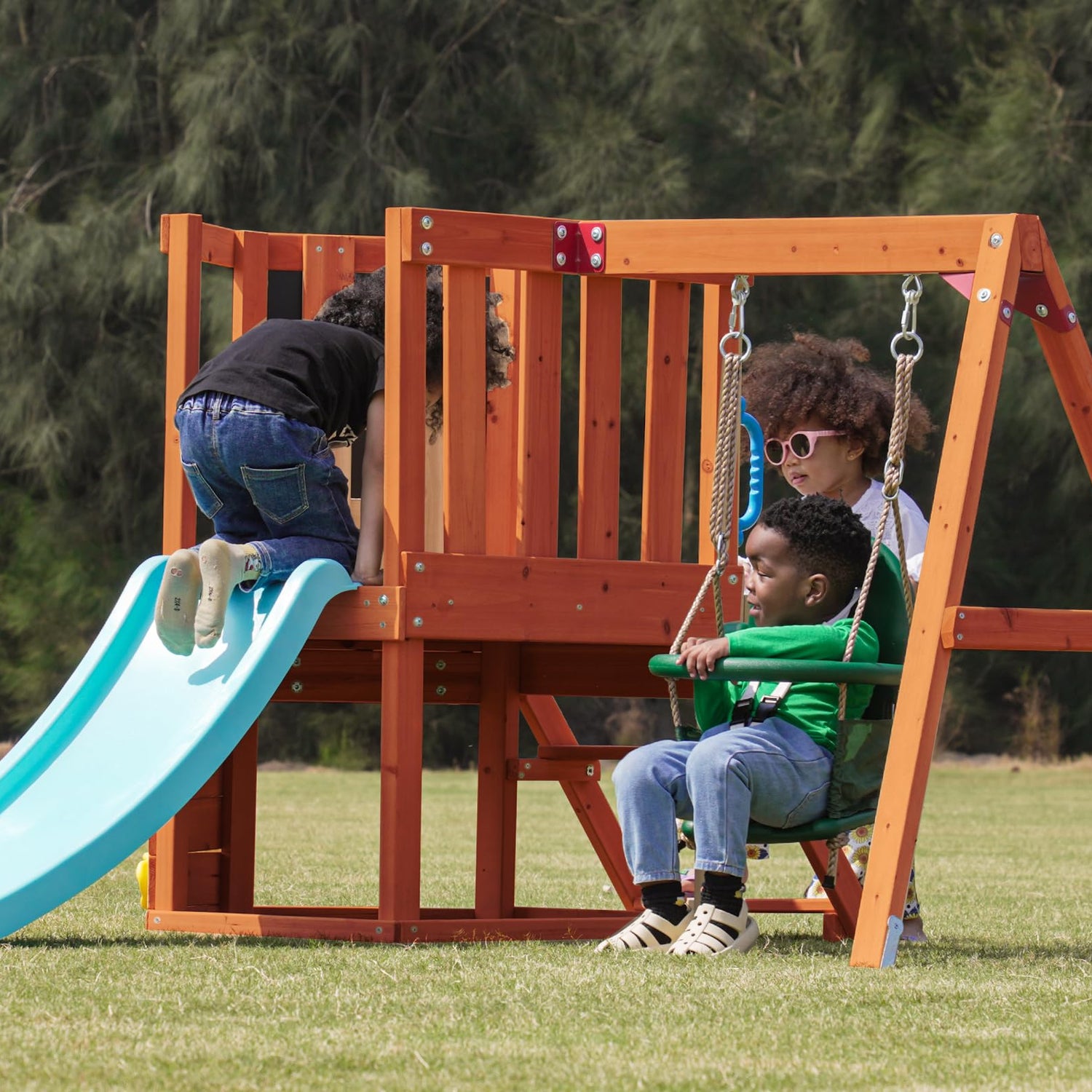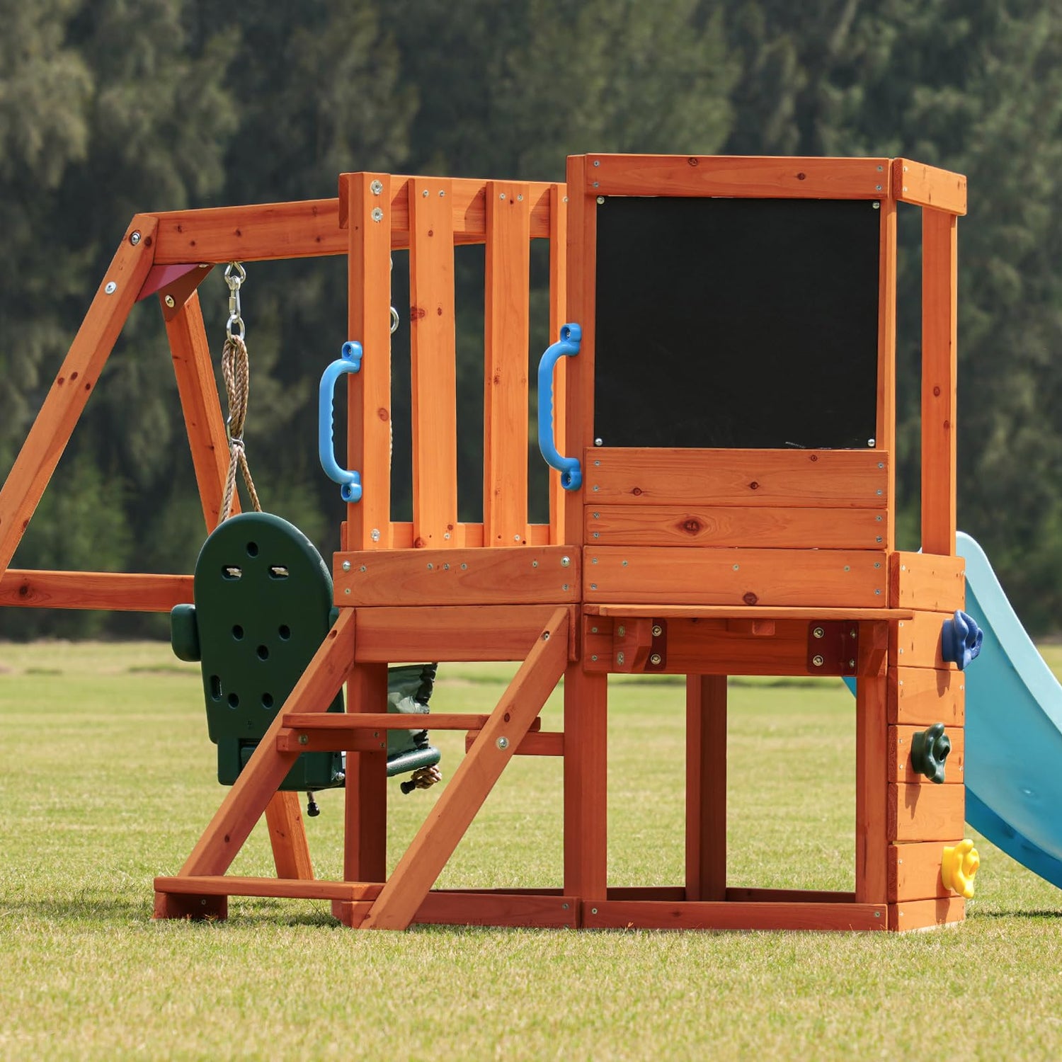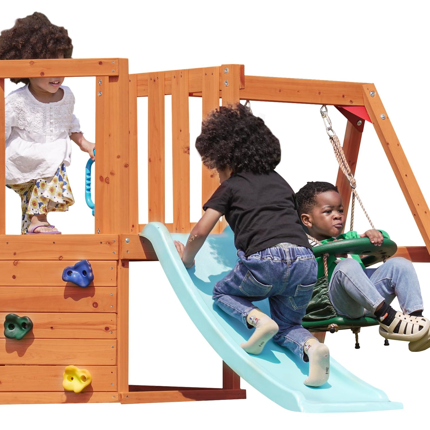 - PREMIUM QUALITY CEDAR: Our swing set is made of high-quality cedar; It has good waterproof, anti-corrosion, and anti-crack functions; suitable for any weather