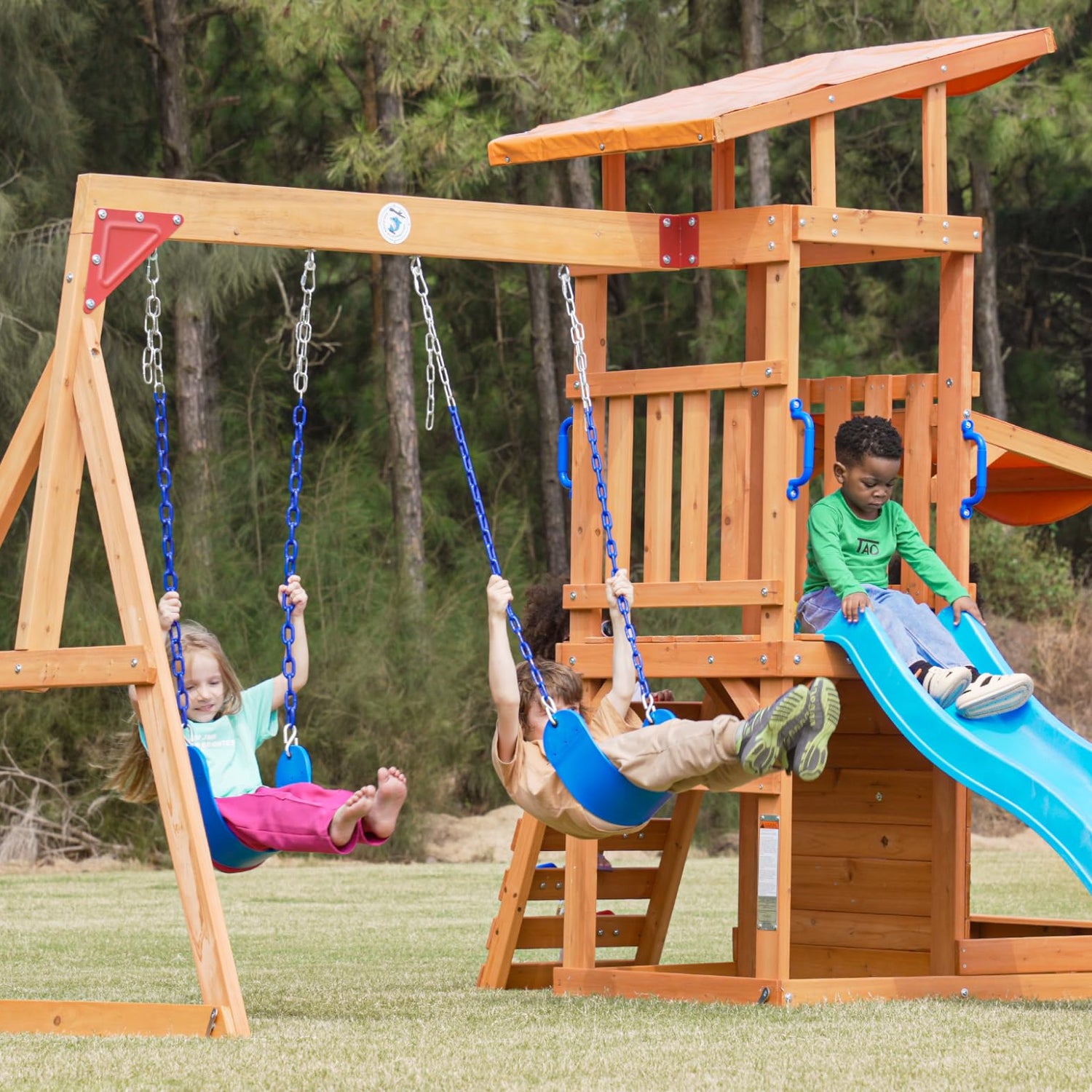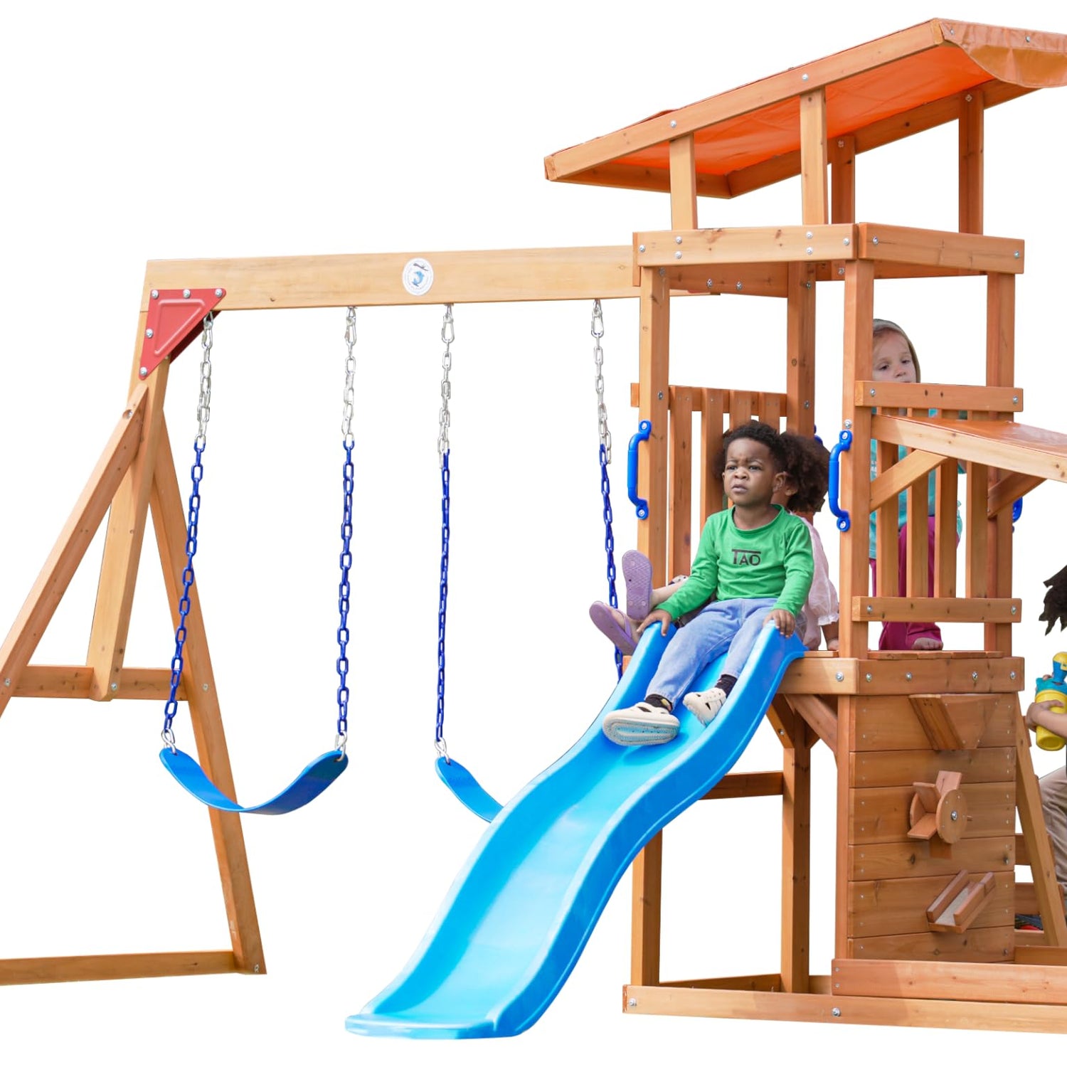 - PREMIUM QUALITY CEDAR: Our swing set is made of high-quality cedar; It has good waterproof, anti-corrosion, and anti-crack functions; suitable for any weather