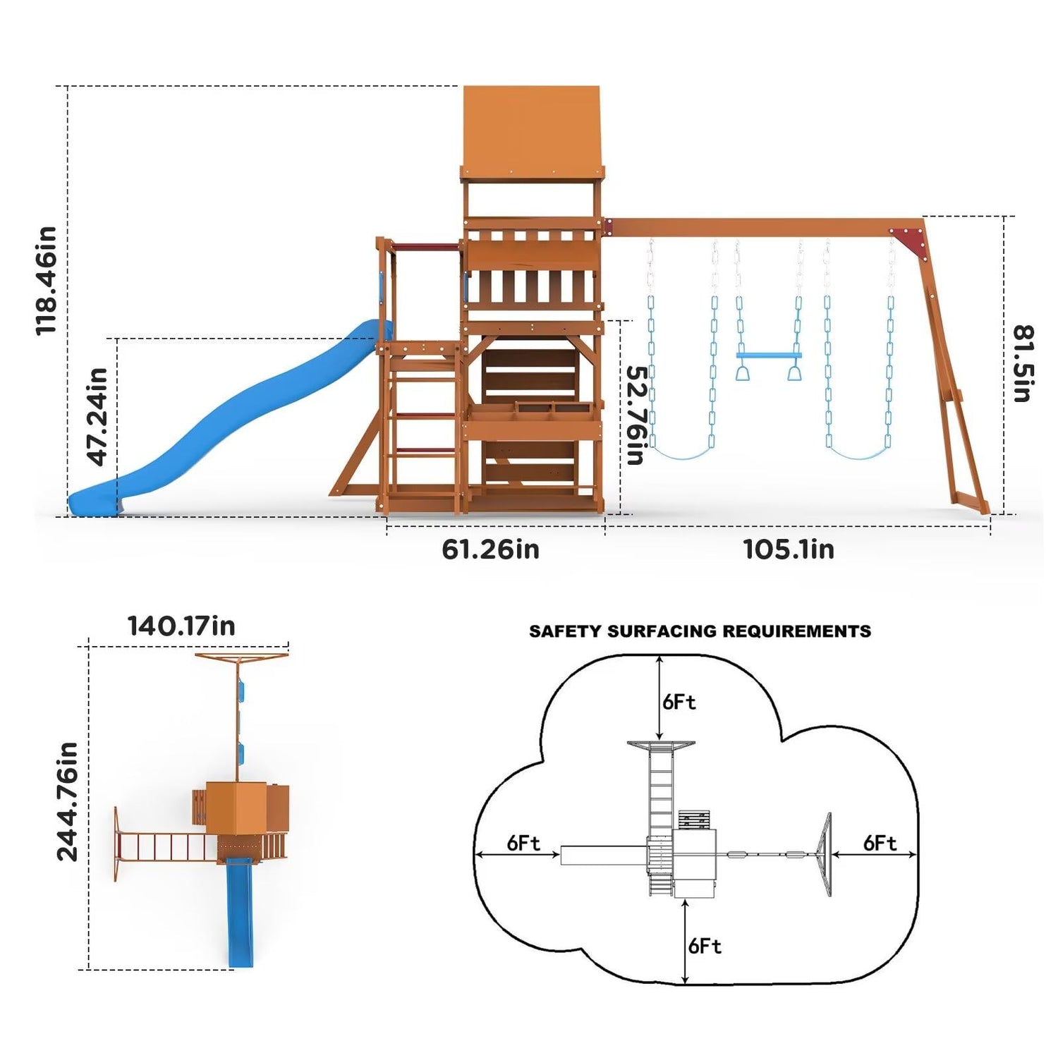 - MONKEY BAR: The classic combination of the climbing frame can let kids do more practice to improve their balance ability; completely assembled size is 119 x 245 x 140 inches; please check that your backyard can accommodate this product before purchasing