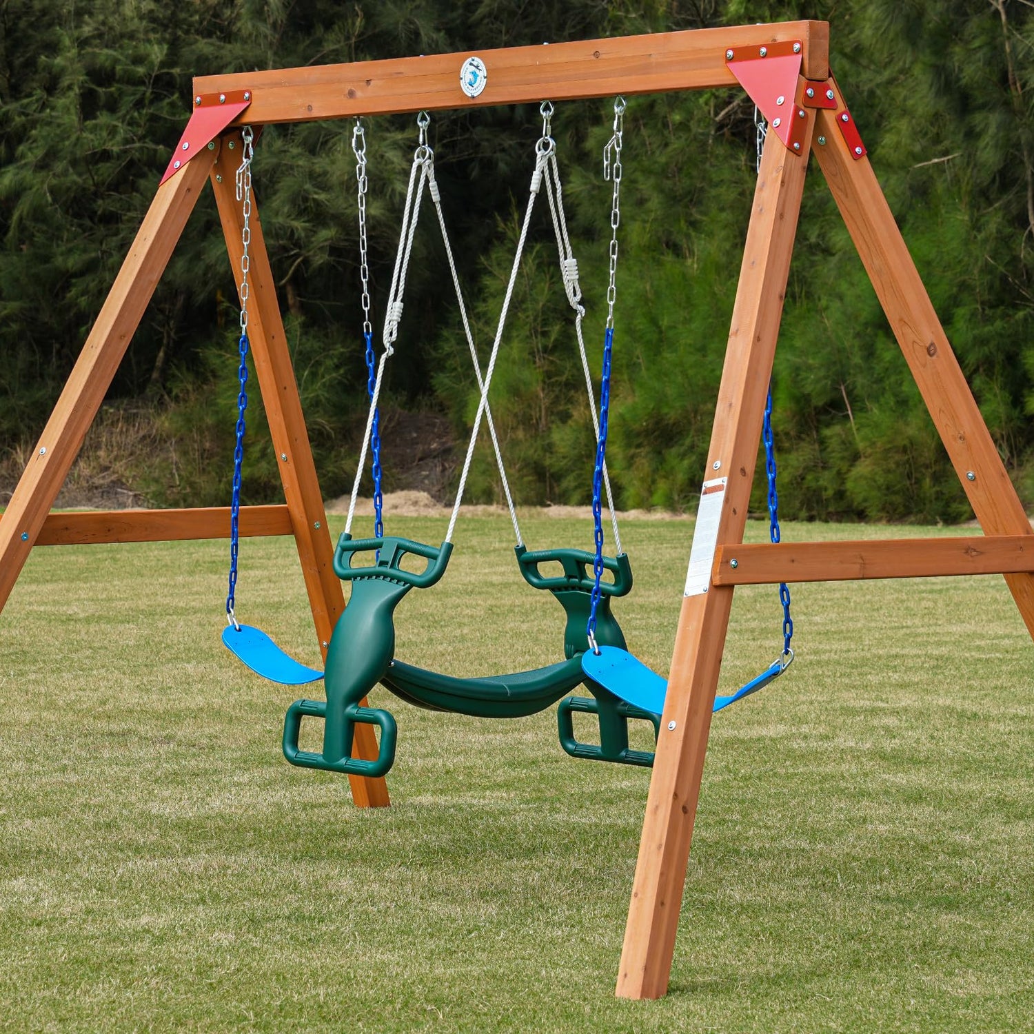 Made of premium qualified cedar, durable, weather resistance, and suitable for all seasons Pinch free chain avoids finger injuries and hair entangled. Upgrade strong Semi-closed metal brackets can maintain the stability when the swing set using. Each post has a crack resistance bolt to effectively prevent cracks from spreading Double ground anchors on each leg, which fix the product with ground strongly Hardware bags are packed by steps to avoid any missing or confusing. 10% more spare parts included.