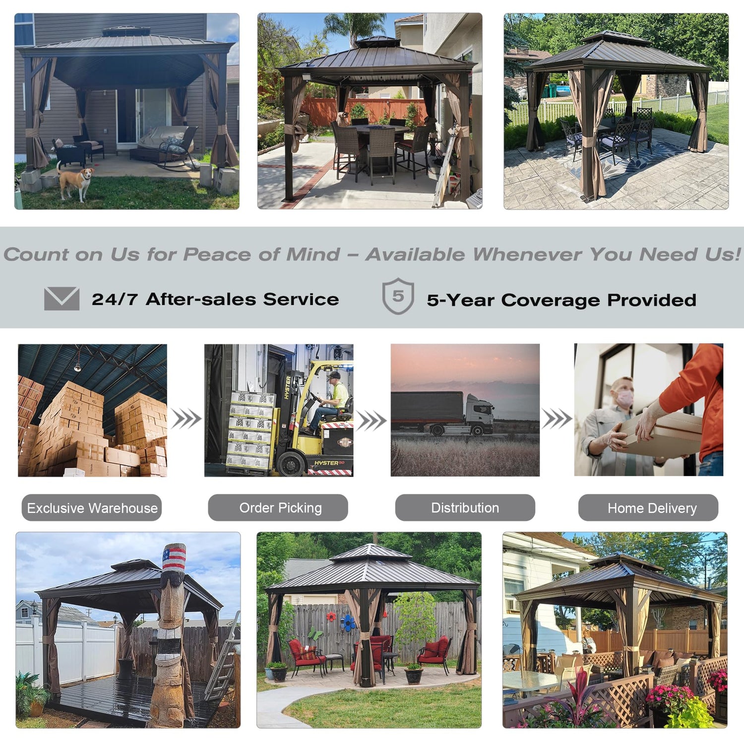 - 🏡❤️Everlasting Assistance - Our dedicated team is always ready to address your inquiries and concerns promptly. Plus, every Domi gazebo comes with long-term coverage, providing added peace of mind against any potential defects or problems.