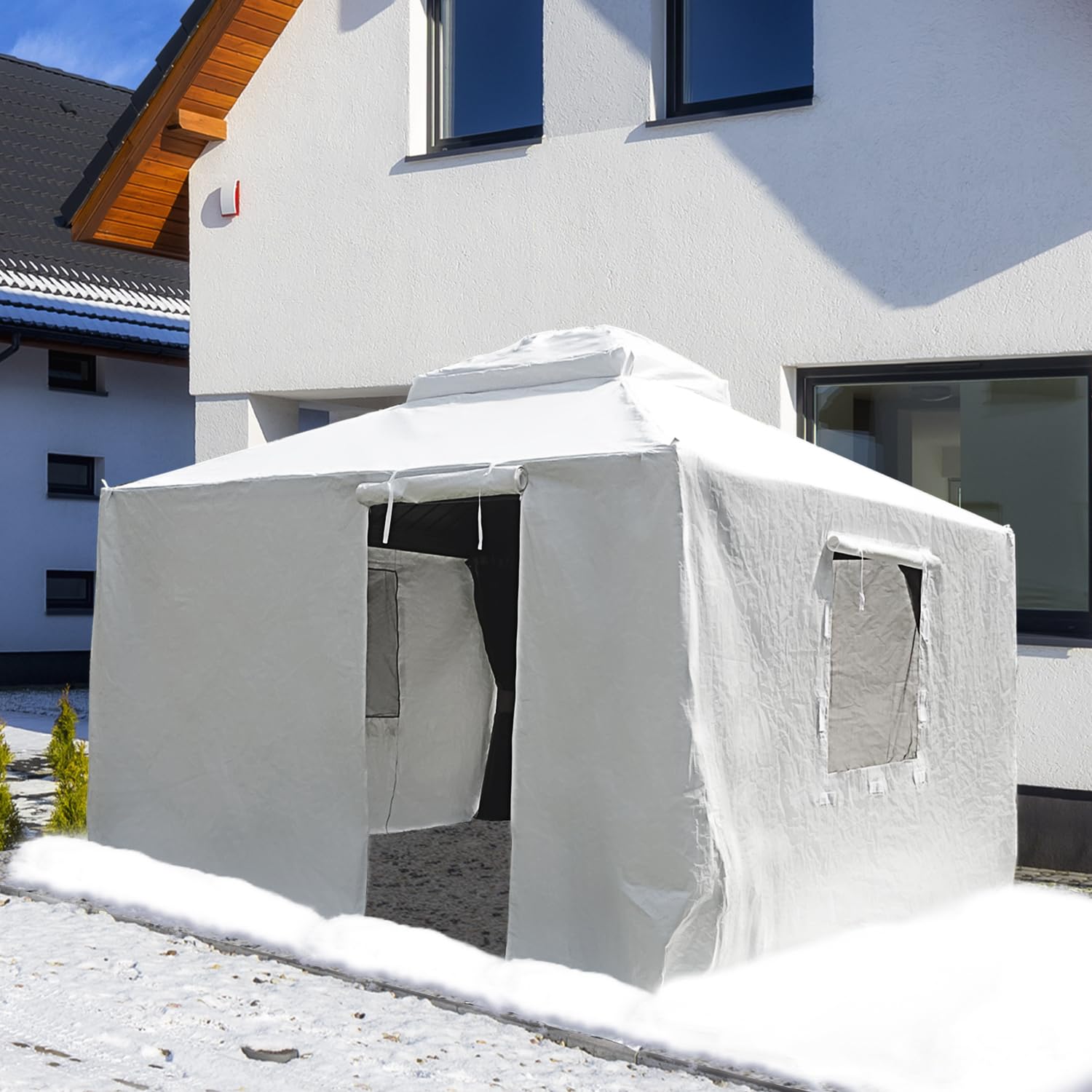 Domi 10' x 10' Universal Winter Gazebo Cover, All Season Waterproof Enclosed Cover with Sidewalls & Ventilated Mesh Windows, All-Weather Outdoor Cover for Hardtop Gazebos, White