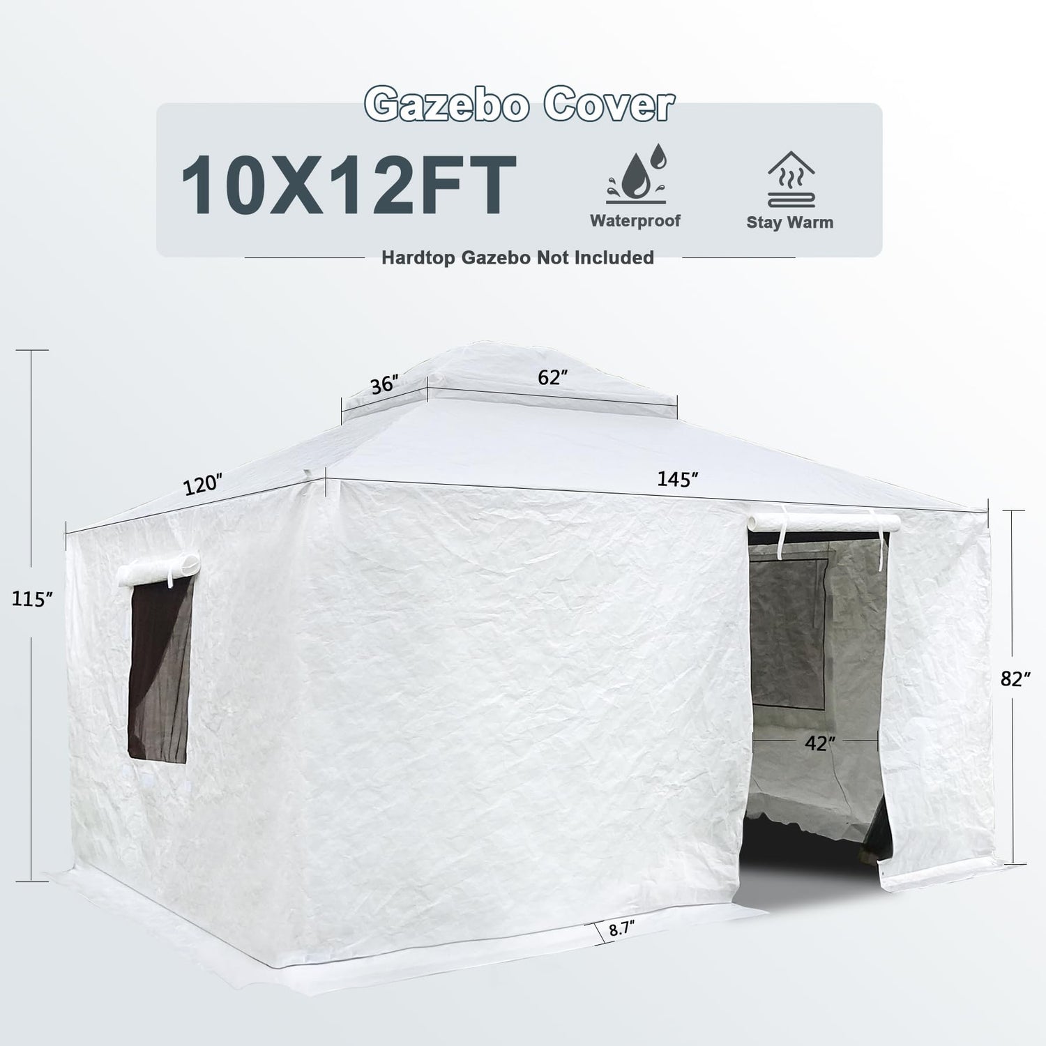 - Easy Installation: Designed for simplicity, it takes mere minutes for a team of three to transform your gazebo into a cozy, winter-ready retreat. Effortlessly slip it on and secure in place, leaving you more time to enjoy the season and less time worrying about the install process.