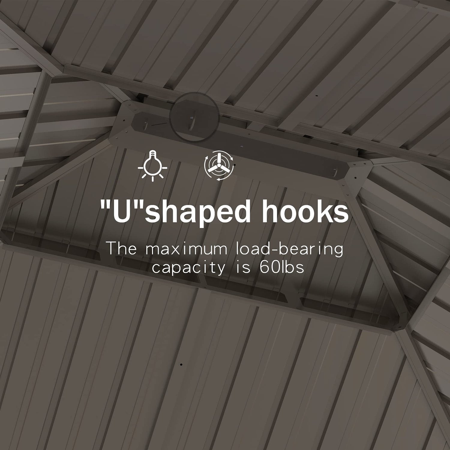 - 🌴[WEATHER-RESISTANT]: This wood grain coated hardtop gazebo keeps the bright light out and doesn’t fade. In addition, the galvanized steel top can withstand heavy snow (2500lbs), which creates a cozy and safe room for you.