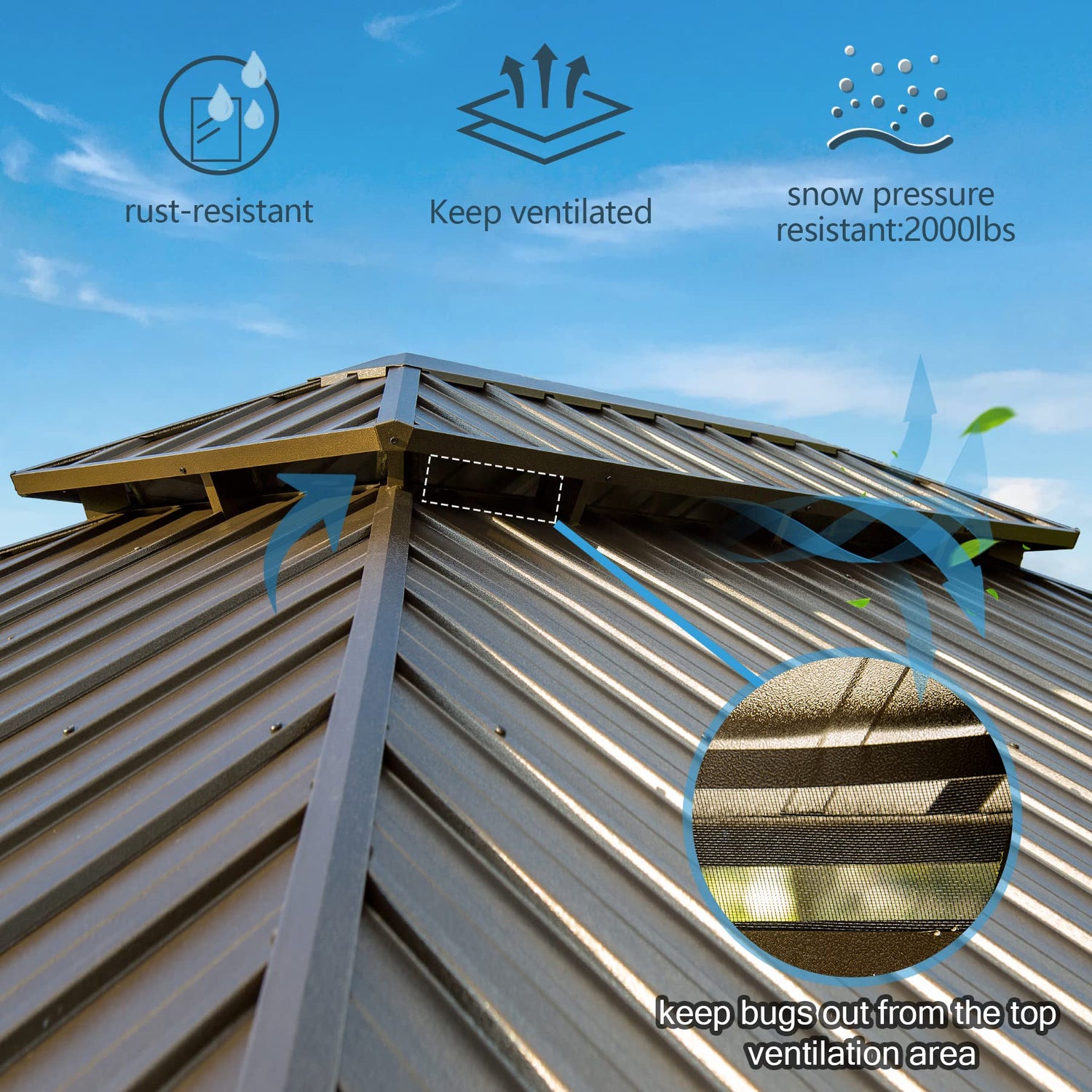 - 🌴[DOUBLE ROOF DESIGN]: Compared with one-layer top design, the double top gazebo has better ventilation and helps withstand strong wind.